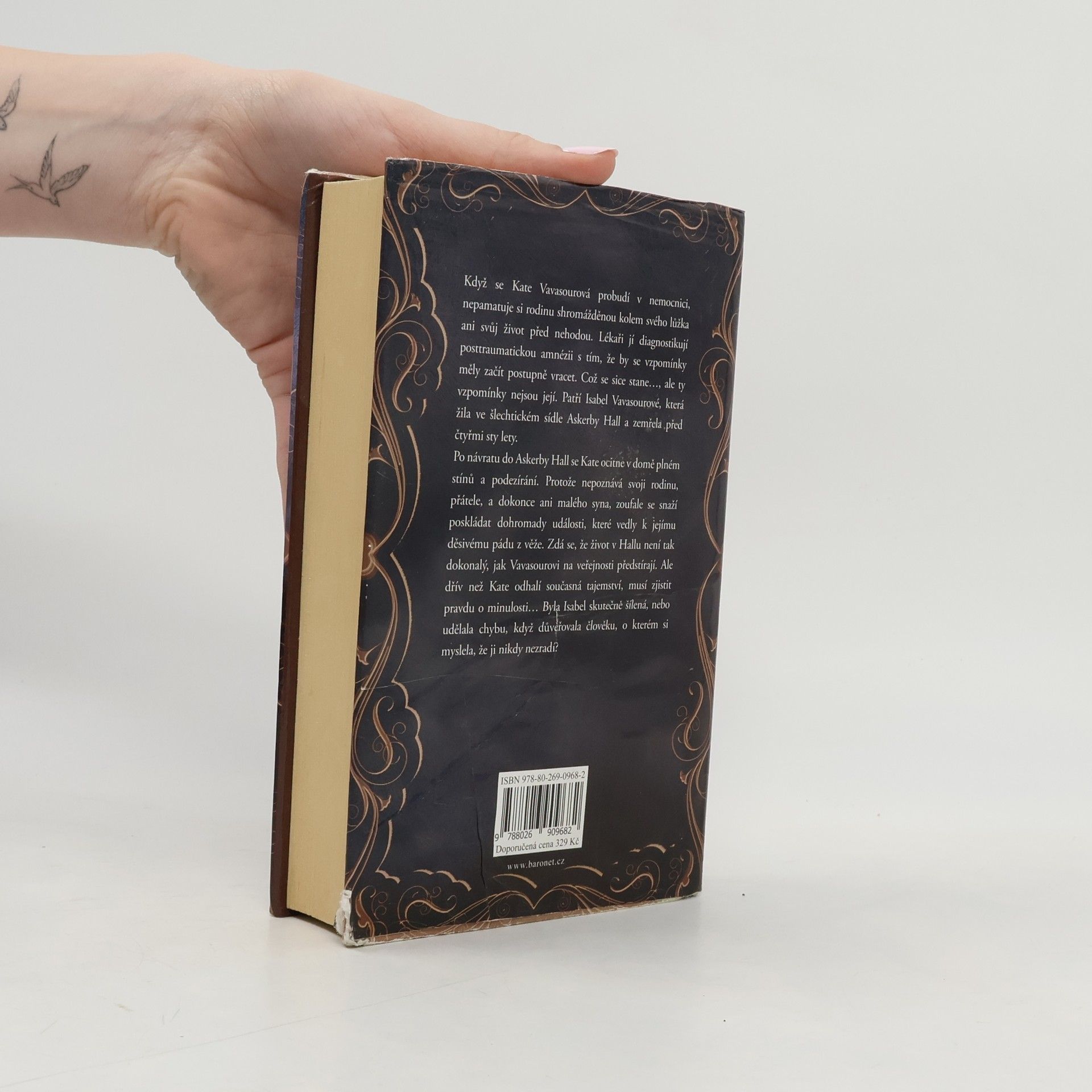 Když se Kate Vavasourová probudí v nemocnici, nepamatuje se na rodinu shromážděnou kolem jejího lůžka ani na svůj život před nehodou. Lékaři jí diagnostikují posttraumatickou amnézii s tím, že by se jí vzpomínky měly začít postupně vracet. Což se stane… ale ty vzpomínky nejsou její. Patří Isabel Vavasourové, která žila a zemřela na panském sídle Askerby před čtyřmi sty lety. Po návratu na Askerby se Kate ocitne v domě plném stínů a podezírání. Protože nepoznává svou rodinu, přátele, a dokonce ani malého syna, zoufale se snaží poskládat události, které vedly k jejímu děsivému pádu. Zdá se, že život na zámku není tak dokonalý, jak Vavasourovi na veřejnosti předstírají. Ale dříve než Kate odhalí současná tajemství, musí odhalit pravdu o minulosti… Bylo Isabelino šílenství skutečné, nebo udělala chybu, když důvěřovala člověku, o kterém si myslela, že ji nikdy nezradí?