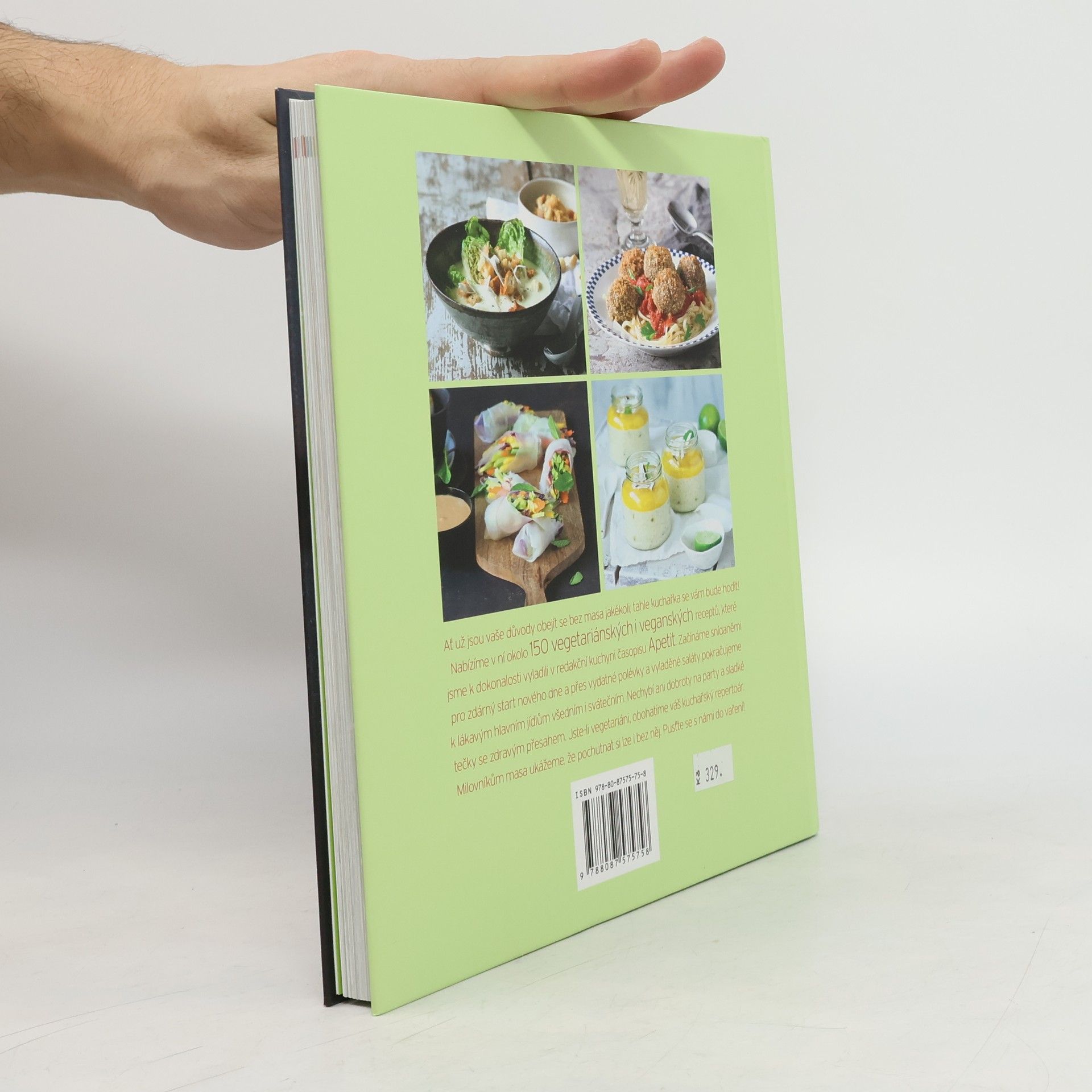 Vegetariánská kuchařka z Edice Apetit nabízí víc než 150 vegetariánských a veganských receptů, které jsme připravili a uvařili v redakční kuchyni časopisu Apetit. Neřídíme se přitom žádnou ideologií – spojovacím prvkem je radost z jídla a vaření. V knize najdete recepty na každý den - všední i sváteční. Začínáme snídaněmi pro zdárný start nového dne a přes vydatné polévky a vyladěné saláty pokračujeme k lákavým jídlům. Nechybí ani dobroty na party a sladké tečky se zdravým přesahem (bezlepkové, bez laktózy, bez cukru atd.). Veganské recepty jsou jasně označeny, u vegetariánských receptů často nabízíme i veganskou varinatu. Kapitoly: Na menší hlad: snídaně a svačiny Pevný základ: polévky Saláty Pro každý den Zvláštní příležitosti Mlsání s přidanou hodnoutou Servis