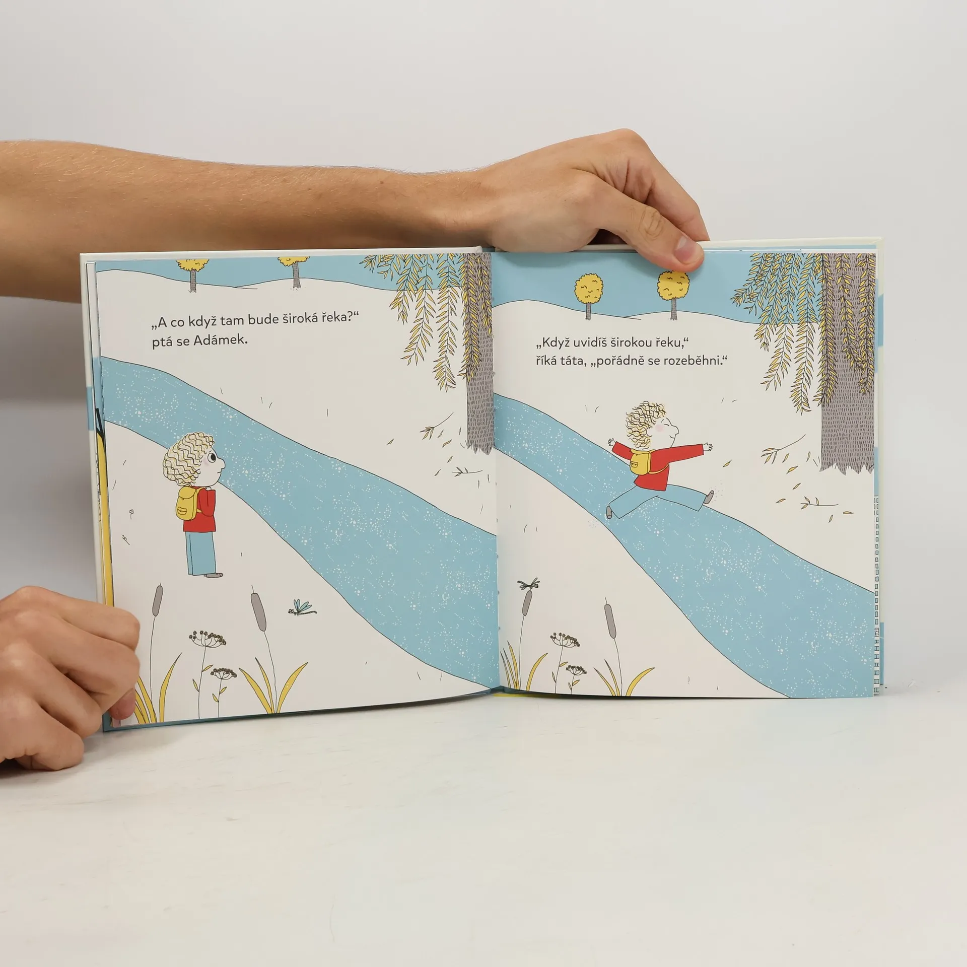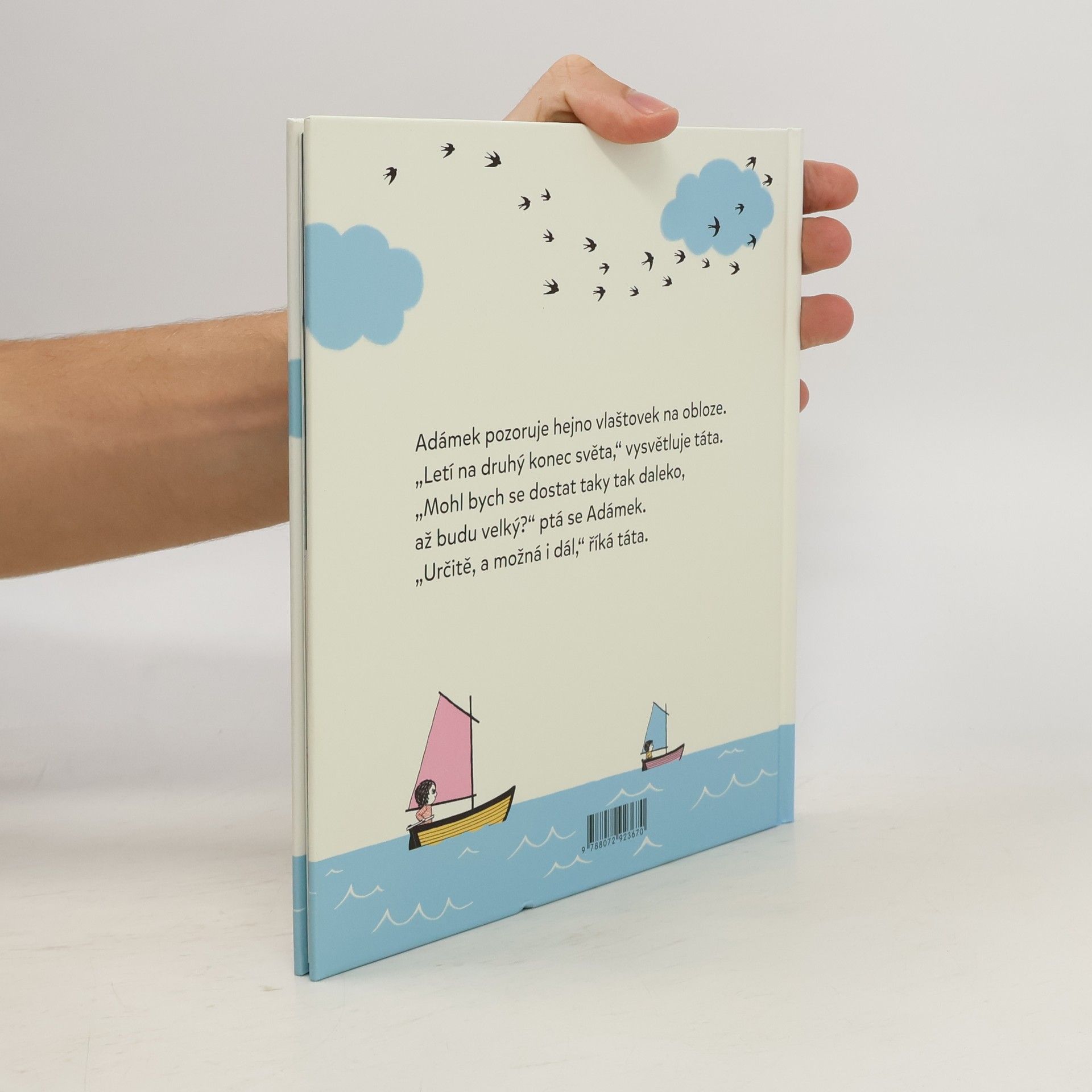 Adámek s tátou pozorují vlaštovky, které odlétají na druhý konec světa. „Mohl bych se dostat taky tak daleko, až budu velký?“ Ptá se Adámek. „Určitě, a možná i dál,“ říká táta. Ale co když padne noc, co když se zvedne velký vítr? Co když se ztratím nebo se budu cítit osamělý? Jedna za druhou poodhalují Adámkovy otázky obavy z neznámé cesty, které my dospělí říkáme život. Tatínek Adamův strach netlumí. Vysvětluje, svými slovy mu dodává odvahu a sebedůvěru, aby se nebál objevovat svět, aby hledal krásu všude a ve všem, aby svou „loďku řídil po svém a právě takovou rychlostí, jaká mu bude vyhovovat. Tatínkovy odpovědi uklidňují, osvobozují a především ujišťují chlapečka o tátově ničím neohrozitelné lásce. Stejně jako u Mám tě ráda a Mám tě rád sestřičko, jednoduché ilustrace perfektně doprovázejí silný, dojemný a pozitivní vzkaz dětem i dospělým. V úvodu knihy jsou připravené řádky, do kterých mohou tatínkové napsat svému dítěti věnování.