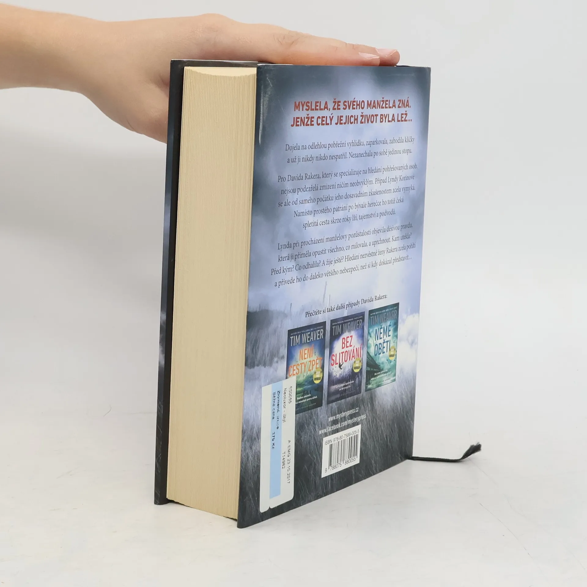 MYSLELA, ŽE SVÉHO MANŽELA ZNÁ. JENŽE CELÝ JEJICH ŽIVOT BYLA LEŽ… Dojela na odlehlou pobřežní vyhlídku, zaparkovala, zahodila klíčky a už ji nikdy nikdo nespatřil. Nezanechala po sobě jedinou stopu. Pro Davida Rakera, který se specializuje na hledání pohřešovaných osob, nejsou podezřelá zmizení ničím neobvyklým. Případ Lyndy Korinové se ale od samého počátku jeho dosavadním zkušenostem zcela vymyká. Namísto prostého pátrání po bývalé herečce ho totiž čeká spletitá cesta skrze roky lží, tajemství a podvodů. Lynda při procházení manželovy pozůstalosti objevila děsivou pravdu, která ji přiměla opustit všechno, co milovala, a uprchnout. Kam utekla? Před kým? Co odhalila? A žije ještě? Hledání nezvěstné ženy Rakera zcela pohltí a přivede ho do daleko většího nebezpečí, než si kdy dokázal představit…