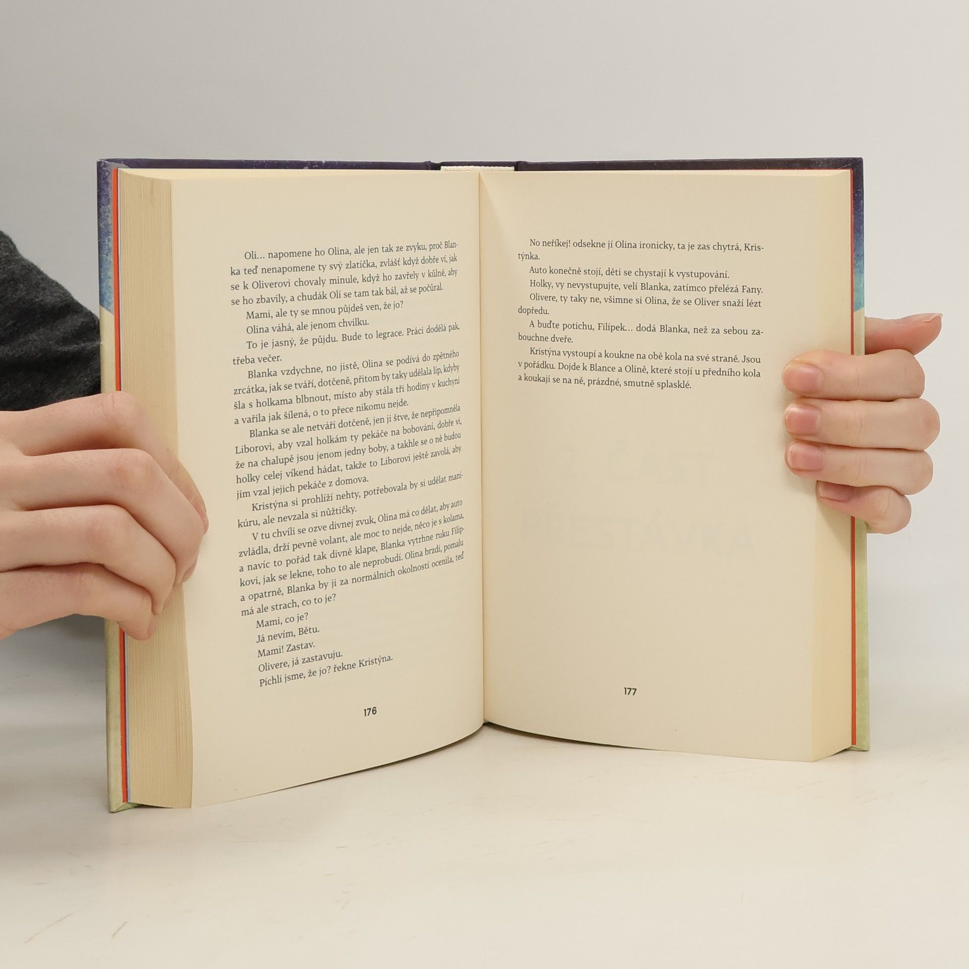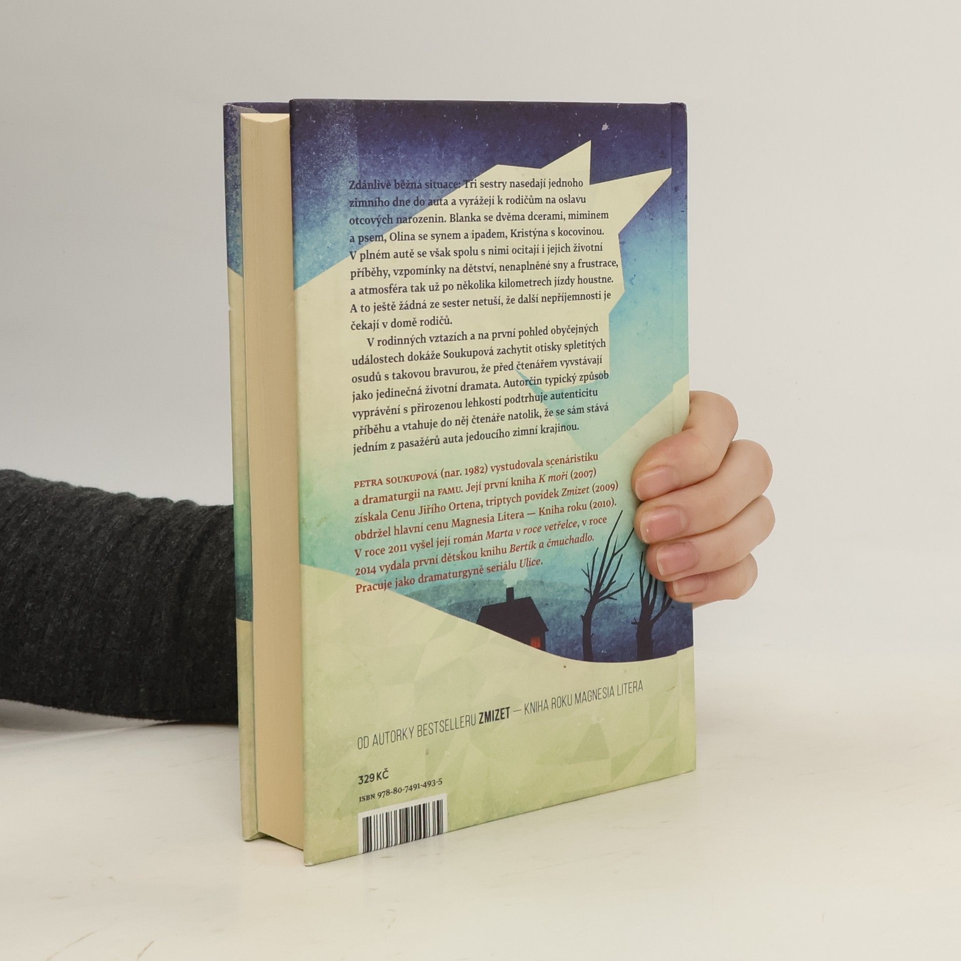 Zdánlivě běžná situace: Tři sestry nasedají jednoho zimního dne do auta a vyrážejí k rodičům na oslavu otcových narozenin. Blanka se dvěma dcerami, miminem a psem, Olina se synem a ipadem, Kristýna s kocovinou. V plném autě se však spolu s nimi ocitají i jejich životní příběhy, vzpomínky na dětství, nenaplněné sny a frustrace, a atmosféra tak už po několika kilometrech jízdy houstne. A to ještě žádná ze sester netuší, že další nepříjemnosti je čekají v domě rodičů. V rodinných vztazích a na první pohled obyčejných událostech dokáže Soukupová zachytit otisky spletitých osudů s takovou bravurou, že před čtenářem vyvstávají jako jedinečná životní dramata. Autorčin typický způsob vyprávění s přirozenou lehkostí podtrhuje autenticitu příběhu a vtahuje do něj čtenáře natolik, že se sám stává jedním z pasažérů auta jedoucího zimní krajinou.
