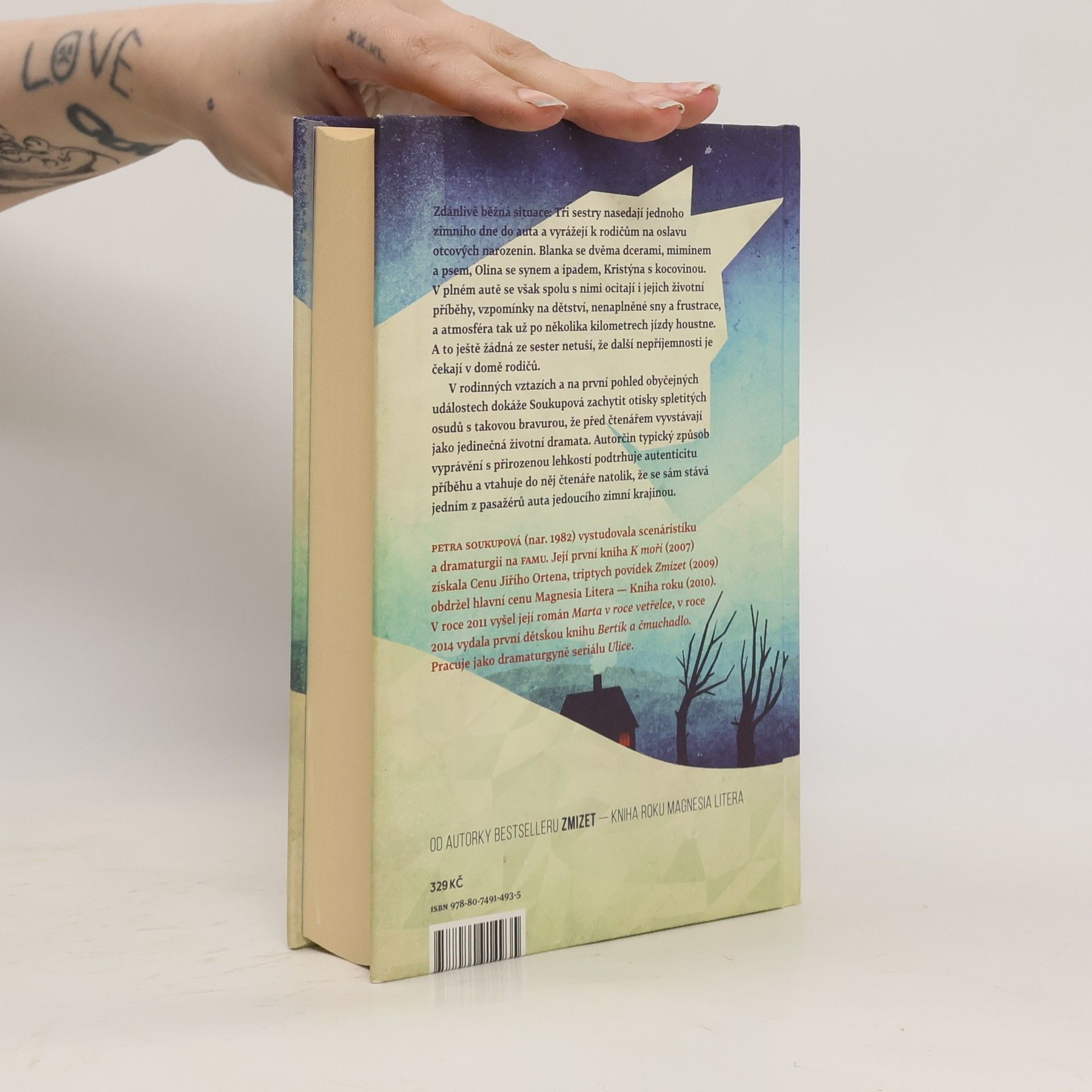 Zdánlivě běžná situace: Tři sestry nasedají jednoho zimního dne do auta a vyrážejí k rodičům na oslavu otcových narozenin. Blanka se dvěma dcerami, miminem a psem, Olina se synem a ipadem, Kristýna s kocovinou. V plném autě se však spolu s nimi ocitají i jejich životní příběhy, vzpomínky na dětství, nenaplněné sny a frustrace, a atmosféra tak už po několika kilometrech jízdy houstne. A to ještě žádná ze sester netuší, že další nepříjemnosti je čekají v domě rodičů. V rodinných vztazích a na první pohled obyčejných událostech dokáže Soukupová zachytit otisky spletitých osudů s takovou bravurou, že před čtenářem vyvstávají jako jedinečná životní dramata. Autorčin typický způsob vyprávění s přirozenou lehkostí podtrhuje autenticitu příběhu a vtahuje do něj čtenáře natolik, že se sám stává jedním z pasažérů auta jedoucího zimní krajinou.