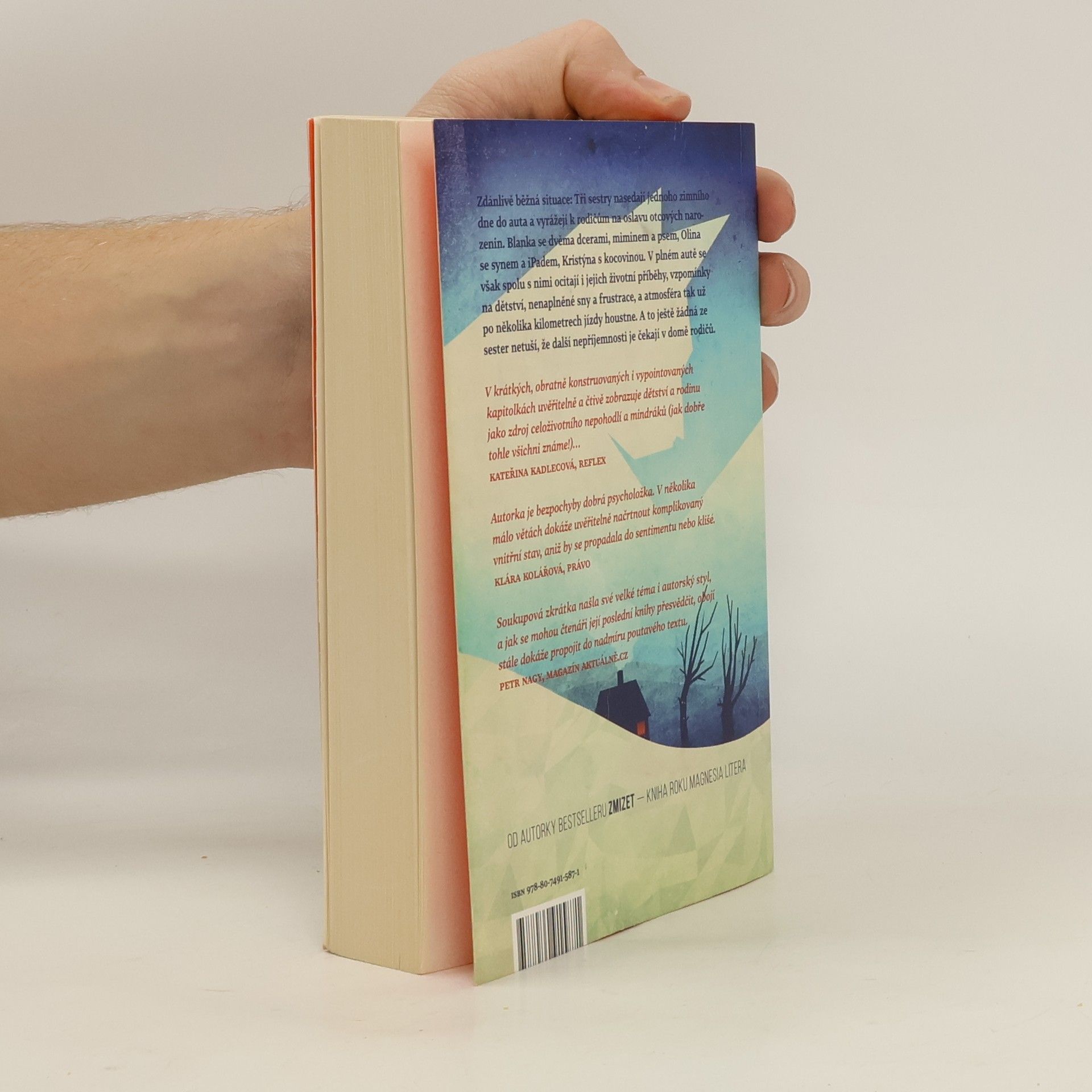 Zdánlivě běžná situace: Tři sestry nasedají jednoho zimního dne do auta a vyrážejí k rodičům na oslavu narozenin svého otce. Blanka se dvěma dcerami, miminem a psem, Olina se synem a tabletem, Kristýna s kocovinou. V jednom autě se však spolu s nimi ocitají i jejich životní příběhy, vzpomínky na dětství, nenaplněné sny a frustrace a sedmimístné Volvo XC se tak už po několika kilometrech jízdy mění v napěchovaný papiňák, který každou chvíli hrozí výbuchem. A to ještě žádná ze sester netuší, že další drama je čeká v domě rodičů. V rodinných vztazích a na první pohled obyčejných událostech dokáže Soukupová zachytit otisky spletitých osudů, dávných zážitků a frustrací s takovou bravurou, že před čtenářem vyvstávají jako jedinečná životní dramata. Autorčin typický způsob vyprávění s předstíranou ledabylostí a neokázale podtrhuje autenticitu příběhu a vtahuje do něj čtenáře natolik, že se sám stává jedním z pasažérů auta jedoucího na rodinnou oslavu.