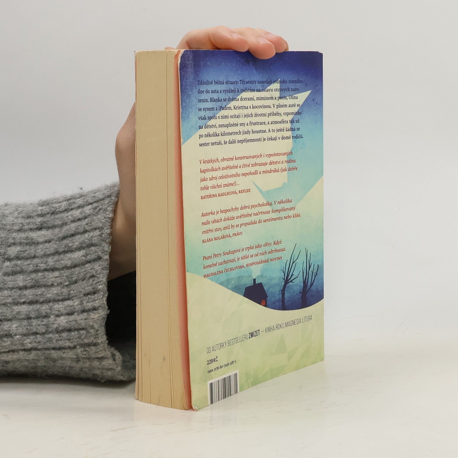 Zdánlivě běžná situace: Tři sestry nasedají jednoho zimního dne do auta a vyrážejí k rodičům na oslavu narozenin svého otce. Blanka se dvěma dcerami, miminem a psem, Olina se synem a tabletem, Kristýna s kocovinou. V jednom autě se však spolu s nimi ocitají i jejich životní příběhy, vzpomínky na dětství, nenaplněné sny a frustrace a sedmimístné Volvo XC se tak už po několika kilometrech jízdy mění v napěchovaný papiňák, který každou chvíli hrozí výbuchem. A to ještě žádná ze sester netuší, že další drama je čeká v domě rodičů. V rodinných vztazích a na první pohled obyčejných událostech dokáže Soukupová zachytit otisky spletitých osudů, dávných zážitků a frustrací s takovou bravurou, že před čtenářem vyvstávají jako jedinečná životní dramata. Autorčin typický způsob vyprávění s předstíranou ledabylostí a neokázale podtrhuje autenticitu příběhu a vtahuje do něj čtenáře natolik, že se sám stává jedním z pasažérů auta jedoucího na rodinnou oslavu.