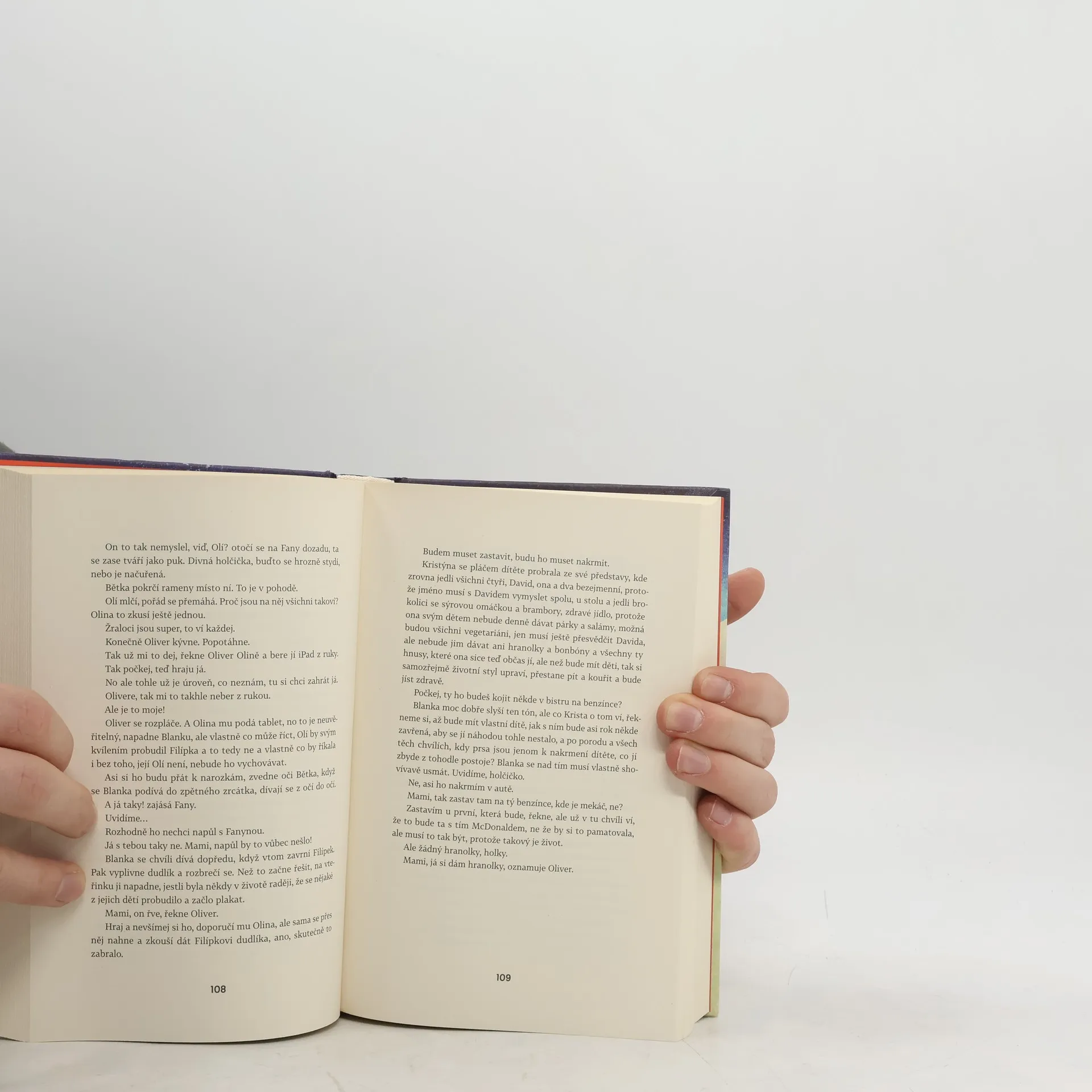Zdánlivě běžná situace: Tři sestry nasedají jednoho zimního dne do auta a vyrážejí k rodičům na oslavu otcových narozenin. Blanka se dvěma dcerami, miminem a psem, Olina se synem a ipadem, Kristýna s kocovinou. V plném autě se však spolu s nimi ocitají i jejich životní příběhy, vzpomínky na dětství, nenaplněné sny a frustrace, a atmosféra tak už po několika kilometrech jízdy houstne. A to ještě žádná ze sester netuší, že další nepříjemnosti je čekají v domě rodičů. V rodinných vztazích a na první pohled obyčejných událostech dokáže Soukupová zachytit otisky spletitých osudů s takovou bravurou, že před čtenářem vyvstávají jako jedinečná životní dramata. Autorčin typický způsob vyprávění s přirozenou lehkostí podtrhuje autenticitu příběhu a vtahuje do něj čtenáře natolik, že se sám stává jedním z pasažérů auta jedoucího zimní krajinou.