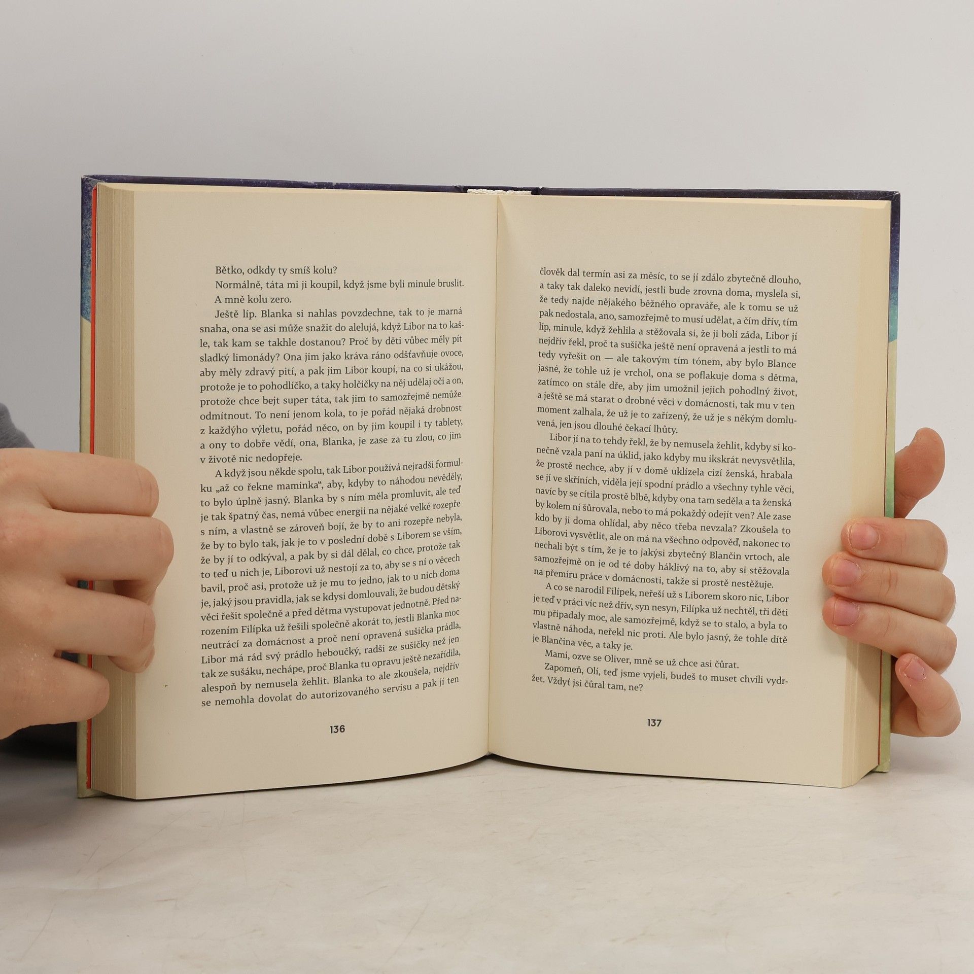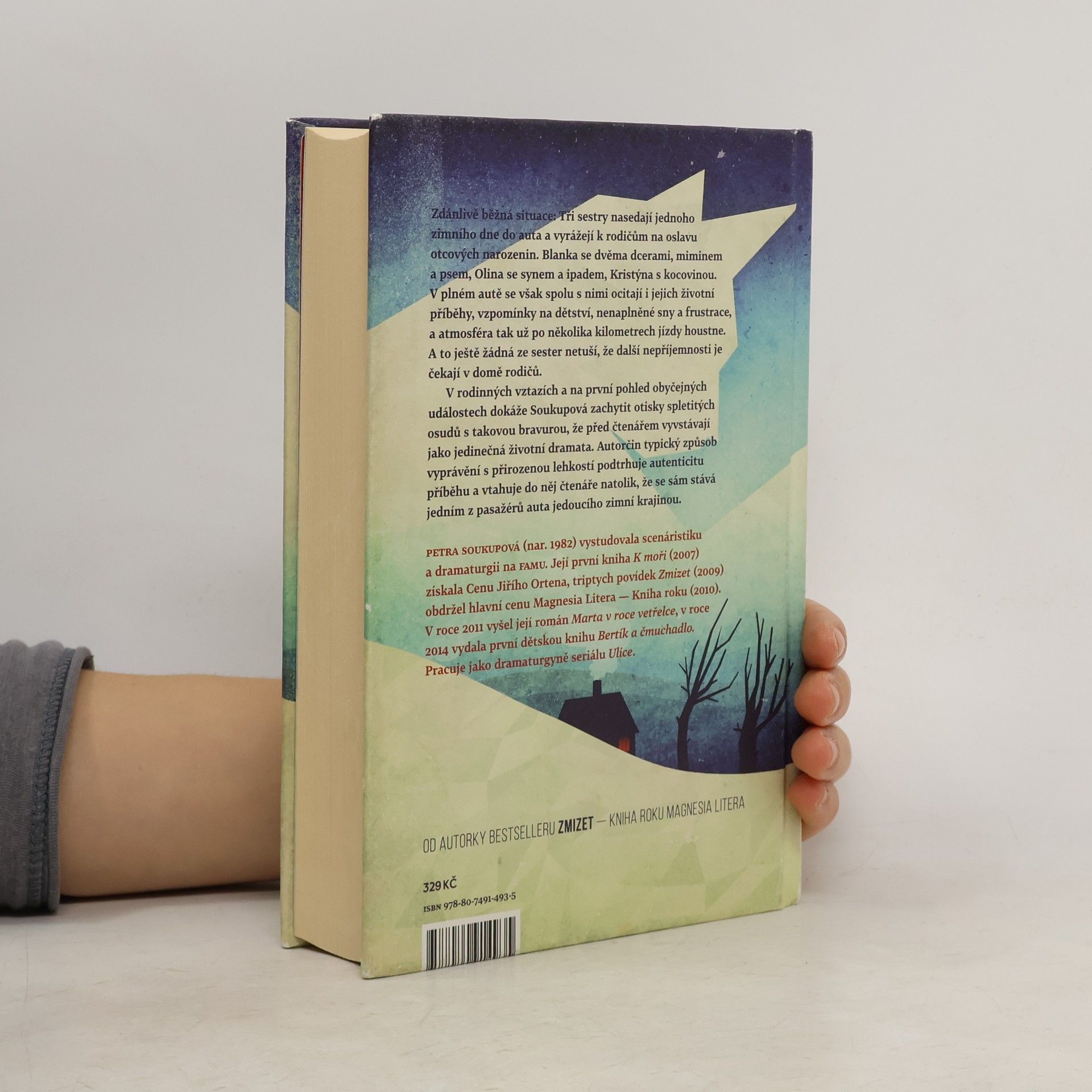 Zdánlivě běžná situace: Tři sestry nasedají jednoho zimního dne do auta a vyrážejí k rodičům na oslavu otcových narozenin. Blanka se dvěma dcerami, miminem a psem, Olina se synem a ipadem, Kristýna s kocovinou. V plném autě se však spolu s nimi ocitají i jejich životní příběhy, vzpomínky na dětství, nenaplněné sny a frustrace, a atmosféra tak už po několika kilometrech jízdy houstne. A to ještě žádná ze sester netuší, že další nepříjemnosti je čekají v domě rodičů. V rodinných vztazích a na první pohled obyčejných událostech dokáže Soukupová zachytit otisky spletitých osudů s takovou bravurou, že před čtenářem vyvstávají jako jedinečná životní dramata. Autorčin typický způsob vyprávění s přirozenou lehkostí podtrhuje autenticitu příběhu a vtahuje do něj čtenáře natolik, že se sám stává jedním z pasažérů auta jedoucího zimní krajinou.