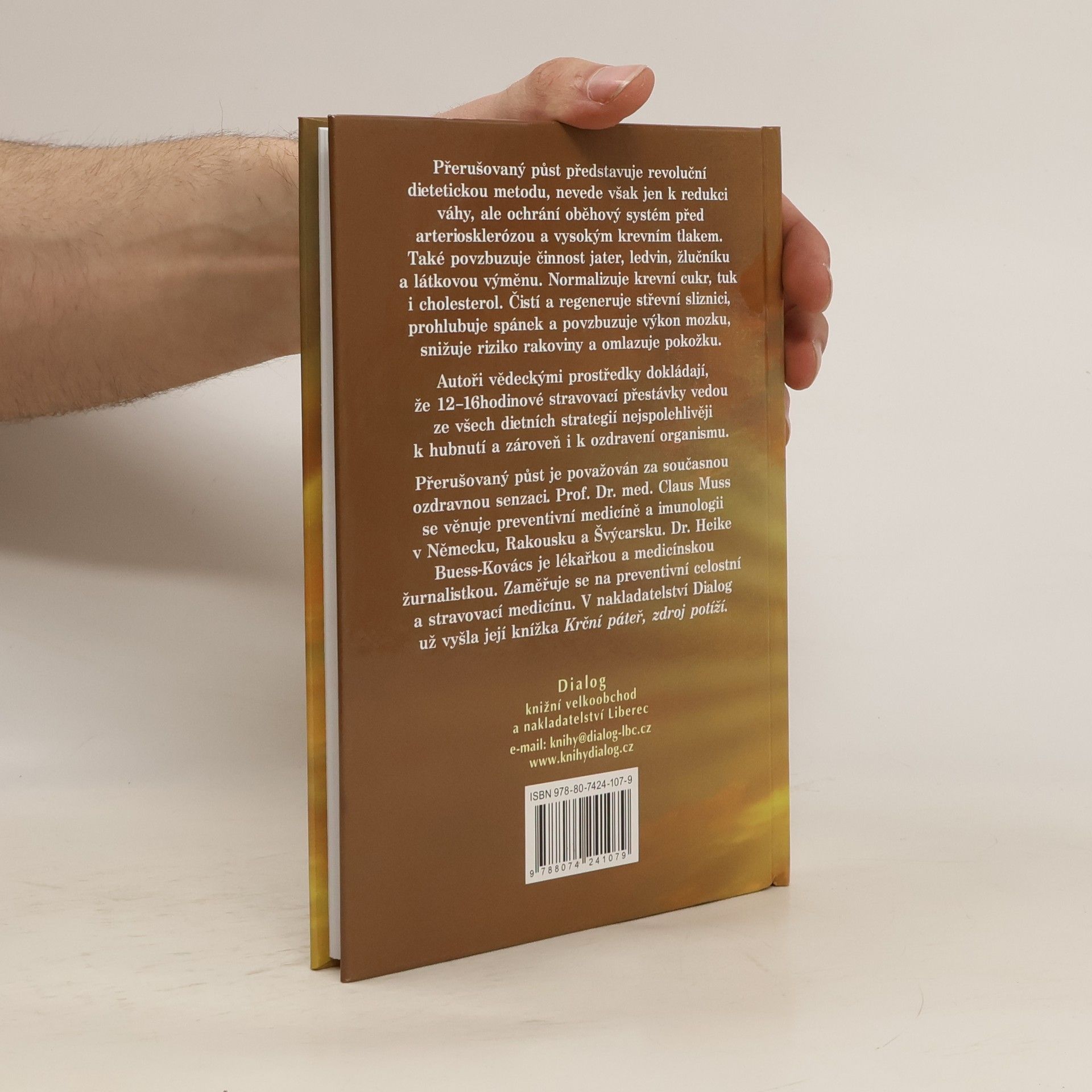 Přerušovaný půst představuje revoluční dietetickou metodu, nevede však jen k redukci váhy, ale ochrání oběhový systém před arteriosklerózou a vysokým krevním tlakem. Také povzbuzuje činnost jater, ledvin, žlučníku a látkovou výměnu. Normalizuje krevní cukr, tuk i cholesterol. Čistí a regeneruje střevní sliznici, prohlubuje spánek a povzbuzuje výkon mozku, snižuje riziko rakoviny a omlazuje pokožku. Autoři vědeckými prostředky dokládají, že 12-16hodinové stravovací přestávky vedou ze všech dietních strategií nejspolehlivěji k hubnutí a zároveň i k ozdravení organismu. Přerušovaný půst je považován za současnou ozdravnou senzaci. Prof. Claus Muss se věnuje preventivní medicíně a imunologii v Německu, Rakousku a Švýcarsku. Drl. Heike Buess-Kovács je lékařkou a medicínskou žurnalistkou. Zaměřuje se na preventivní celostní a stravovací medicínu.