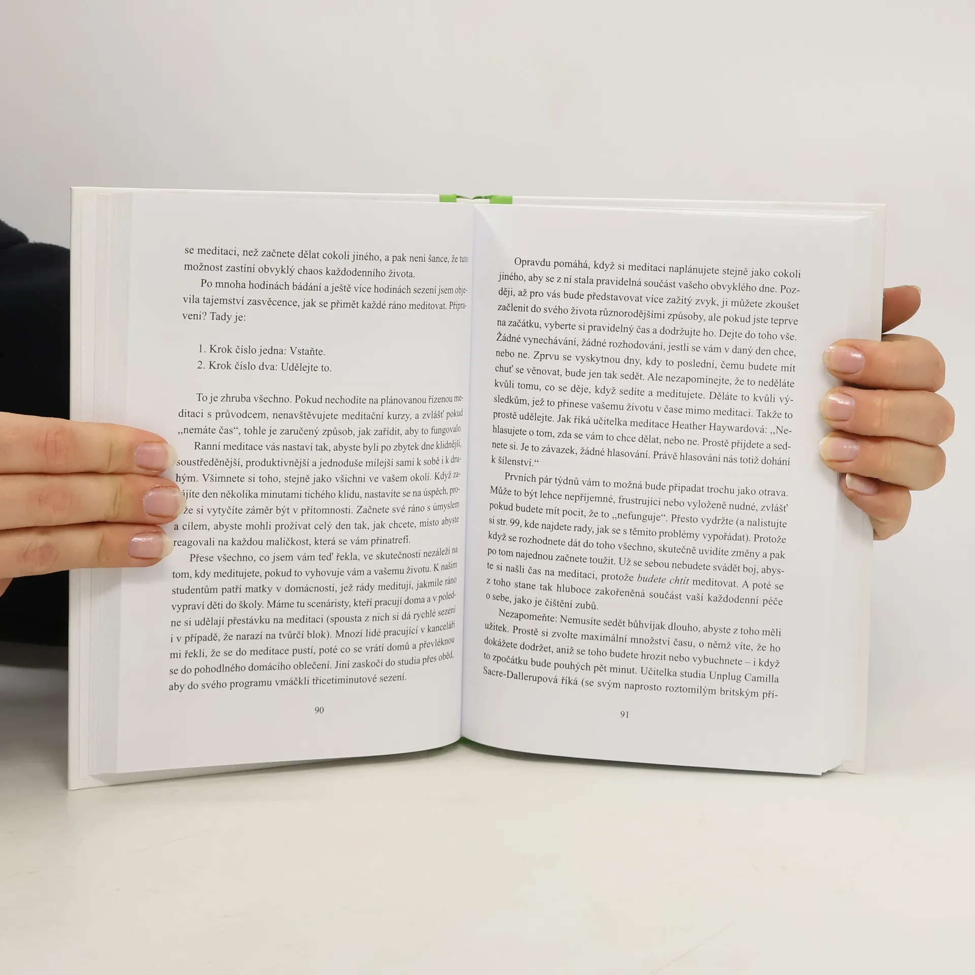 Jednoduchý průvodce meditací pro přepracované skeptiky a moderní ezoteriky Lepší knihu o meditaci si snad ani nelze představit. Autorka přináší přesvědčivý, motivující, srozumitelný a jednoduchý návod, stručně doložený lékařskými výzkumy a velmi věrohodný. V jednoznačném souladu se současným trendem se člověk díky meditaci uklidní, získá lepší soustředění i paměť, a dokonce bude krásnější a víc sexy. Mnohem příjemněji si pak život užívá a je také mnohem výkonnější. Skvěle zpracovaná a zábavně napsaná knížka!