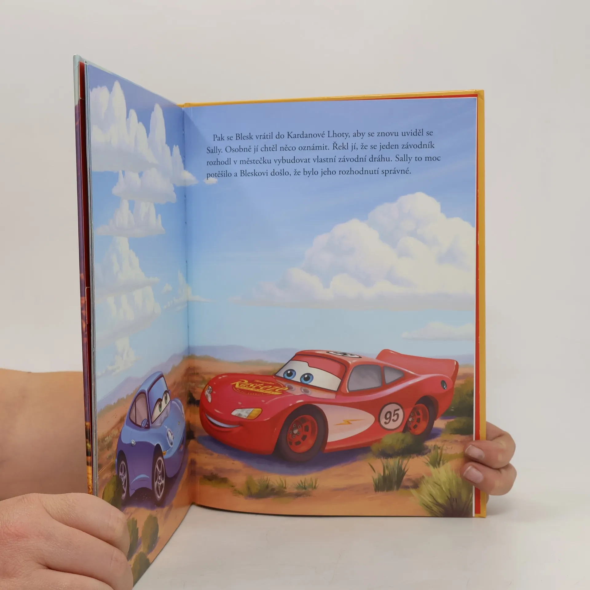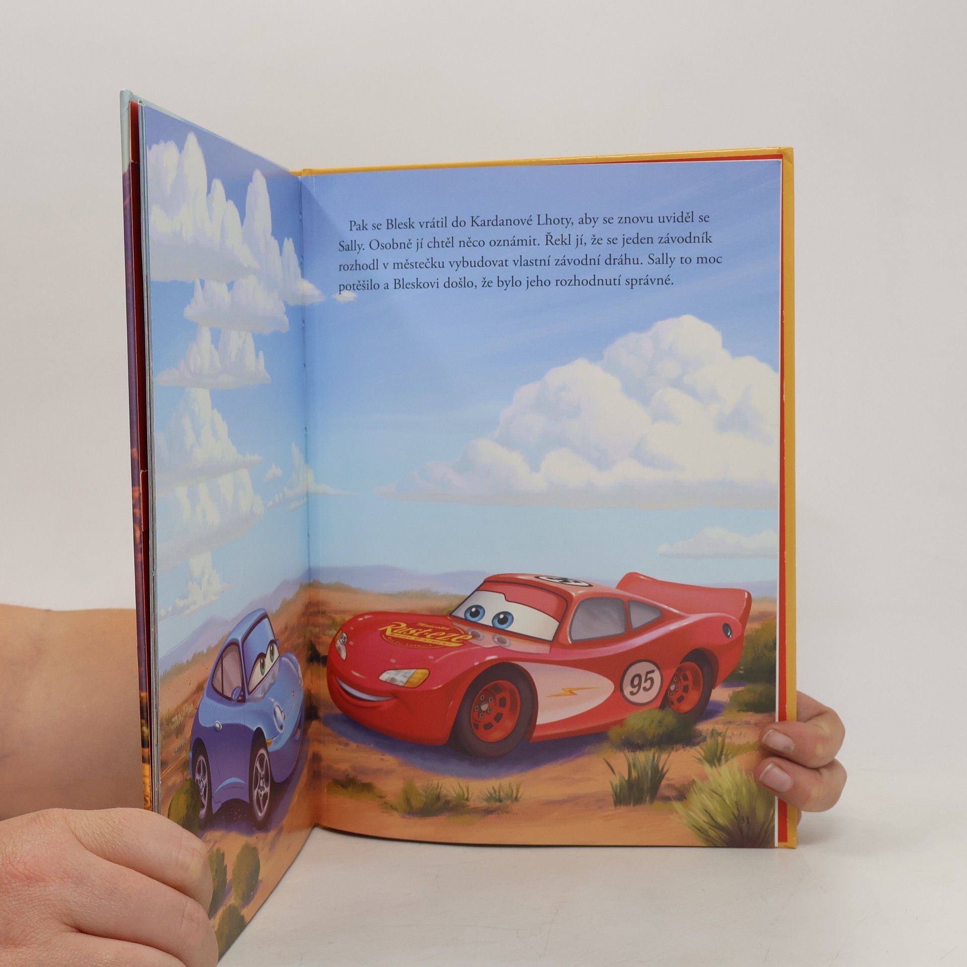 To tady ještě nebylo! Blesk McQueen, nejrychlejší závodní auto všech dob, visí nemohoucně na sloupu vysokého napětí! Navíc mu jsou nařízeny veřejně prospěšné práce v zapadlém městečku Kardanová Lhota. A tam potká… výborného trenéra, nejlepšího kamaráda a velkou lásku.