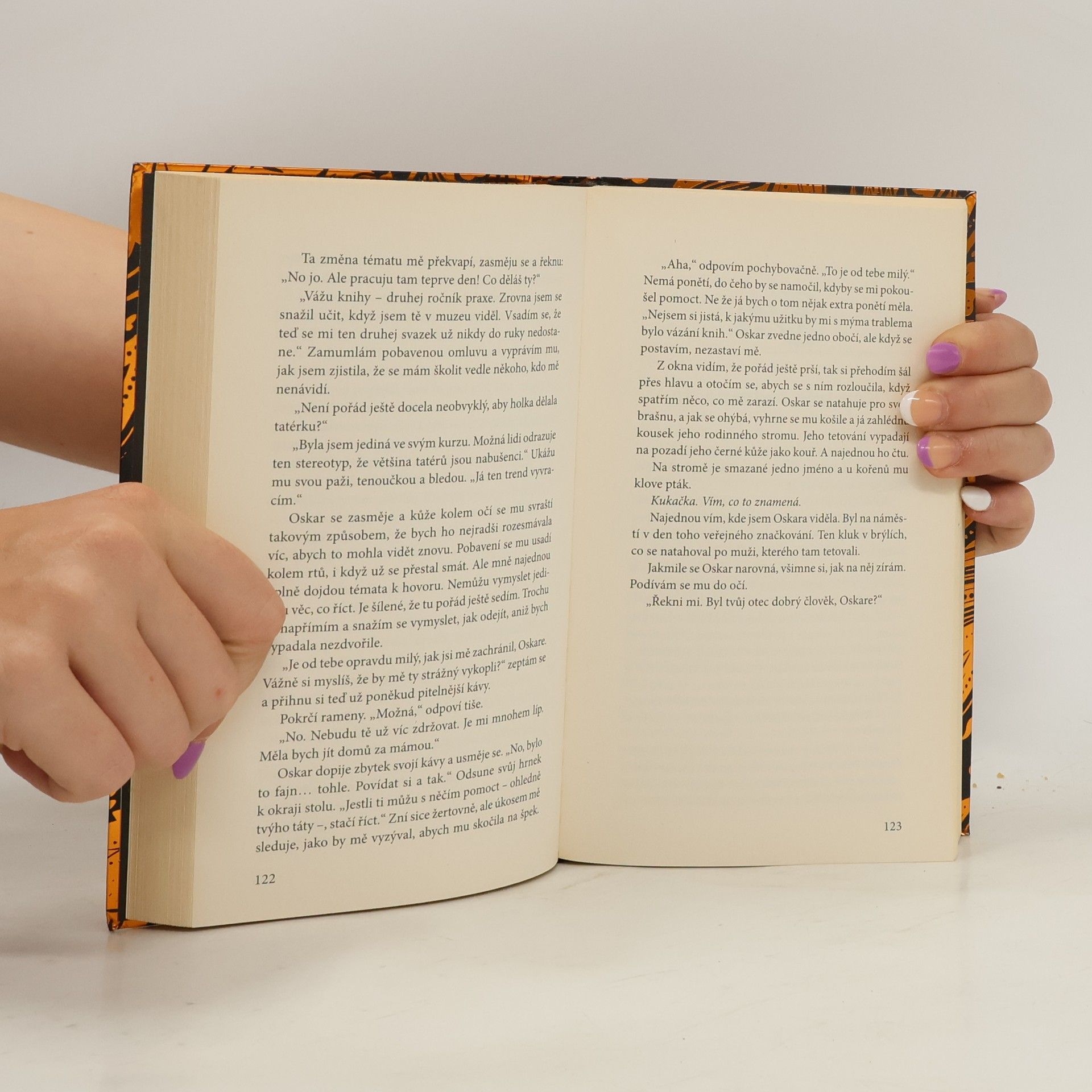 Představte si, že žijete v zemi, kde každá přelomová událost, každé důležité rozhodnutí, všechno, co pro vás má nějaký význam, skončí na vašem těle jako tetování. Po smrti pak z potetované kůže vytvoří knihu, která bude vašim potomkům sloužit jako vzpomínka na vás a vám jako záruka věčného života. V takovém světě žije Leora. Když její otec zemře, Leora by dala cokoli, jen aby mohl v paměti ostatních žít navždy. Ví totiž, že její otec si zasloužil, aby jeho kniha kůže se záznamem celého jeho dobrého života přetrvala navěky. Když však zjistí, že z knihy jejího otce někdo kus vyřízl a knihu upravil, musí se pustit do pátrání, které ji přiměje zamyslet se nad tím, zda svého otce vůbec znala. A jestli zná samu sebe. A jestli všechno, v co celý život věřila, je vůbec pravda. Tak začíná rozplétání strašného tajemství…