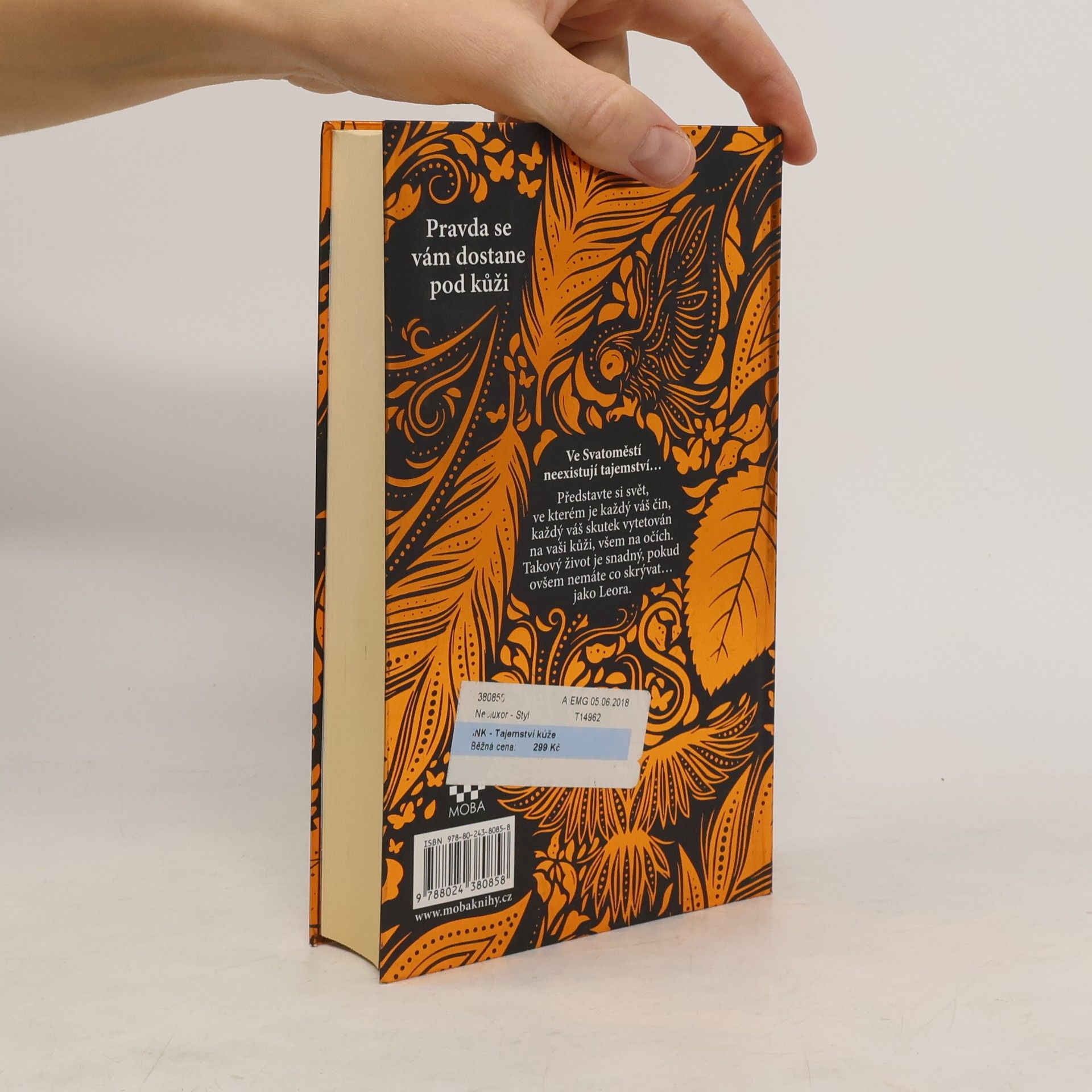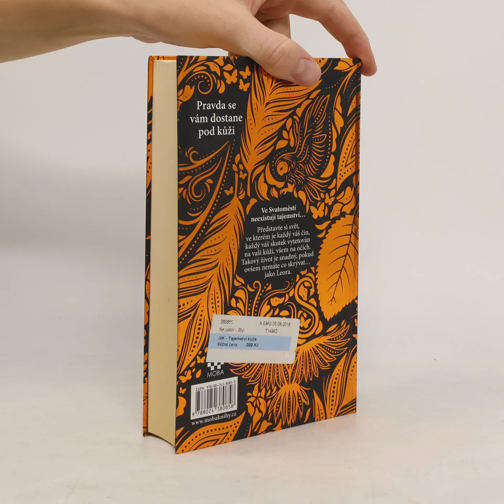 Představte si, že žijete v zemi, kde každá přelomová událost, každé důležité rozhodnutí, všechno, co pro vás má nějaký význam, skončí na vašem těle jako tetování. Po smrti pak z potetované kůže vytvoří knihu, která bude vašim potomkům sloužit jako vzpomínka na vás a vám jako záruka věčného života. V takovém světě žije Leora. Když její otec zemře, Leora by dala cokoli, jen aby mohl v paměti ostatních žít navždy. Ví totiž, že její otec si zasloužil, aby jeho kniha kůže se záznamem celého jeho dobrého života přetrvala navěky. Když však zjistí, že z knihy jejího otce někdo kus vyřízl a knihu upravil, musí se pustit do pátrání, které ji přiměje zamyslet se nad tím, zda svého otce vůbec znala. A jestli zná samu sebe. A jestli všechno, v co celý život věřila, je vůbec pravda. Tak začíná rozplétání strašného tajemství…