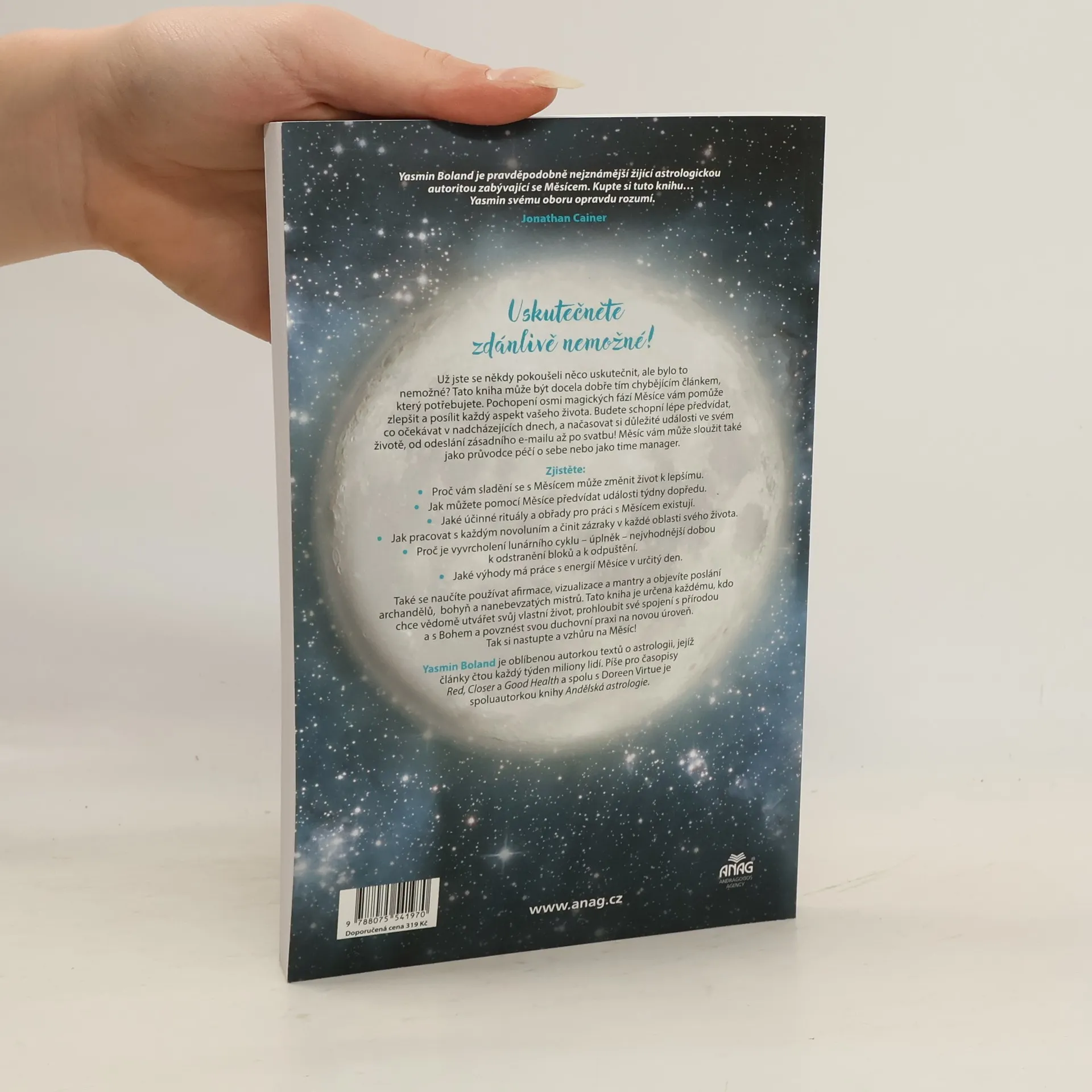 Pochopení osmi magických fází Měsíce vám pomůže zlepšit a posílit každý aspekt vašeho života. Budete si moci udělat lepší představu o tom, co můžete očekávat v nadcházejících dnech a jak načasovat důležité události ve svém životě, od odeslání zásadních životních e-mailů třeba k žádosti o ruku! Měsíc může být jednak vaším průvodcem péčí o sebe a zároveň vaším organizérem. Zjistěte, proč může sladění se s Měsícem změnit váš život k lepšímu, jak můžete předvídat události příštích týdnů v souladu s Měsícem, poznejte mocné rituály a obřady pro práci s Měsícem, naučte se, jak pracovat s novoluním a učinit každou část vašeho života magickou, pochopte, proč je vrchol lunárního cyklu – úplněk – nejvhodnější dobou pro odstranění bloků a odpuštění, přínosy práce s energií Měsíce v určitý den. Seznámíte se také s afirmacemi, vizualizacemi a chorály, objevíte úlohu archandělů, bohyň a vzestupných Mistrů. Tato kniha je určena pro všechny, kdo chtějí vědomě utvářet své vlastní životy, prohloubit své spojení s přírodou a bohem a povznést svou duchovní praxi na novou úroveň. Takže vzhůru na Měsíc!