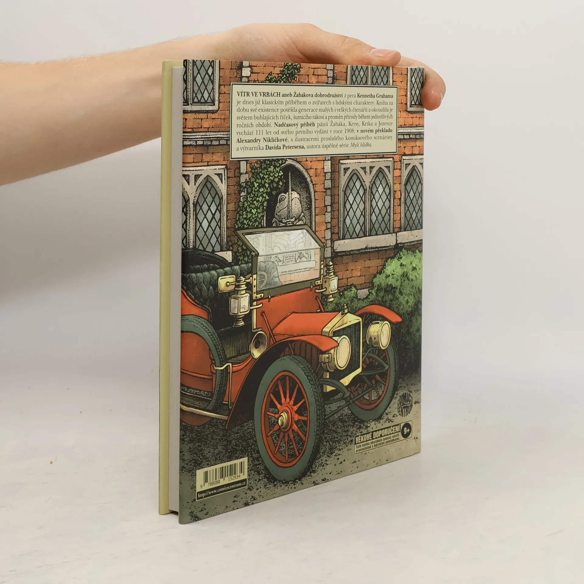 Upozornění: toto vydání není komiks, ale kniha s bohatými ilustracemi. Vítr ve vrbách aneb Žabákova dobrodružství z pera Kennetha Grahama je dnes již klasickým příběhem o zvířatech s lidskými charaktery. Kniha za dobu své existence potěšila generace malých i velkých čtenářů a okouzlila je světem bublajících říček, šumícího rákosí a proměn přírody během jednotlivých ročních období. Nadčasový příběh pánů Žabáka, Krysy, Krtka a Jezevce vychází 111 let od svého prvního vydání v roce 1908, v novém překladu Alexandry Niklíčkové, s ilustracemi proslulého komiksového scenáristy a výtvarníka Davida Petersena, autora úspěšné série Myší hlídka.