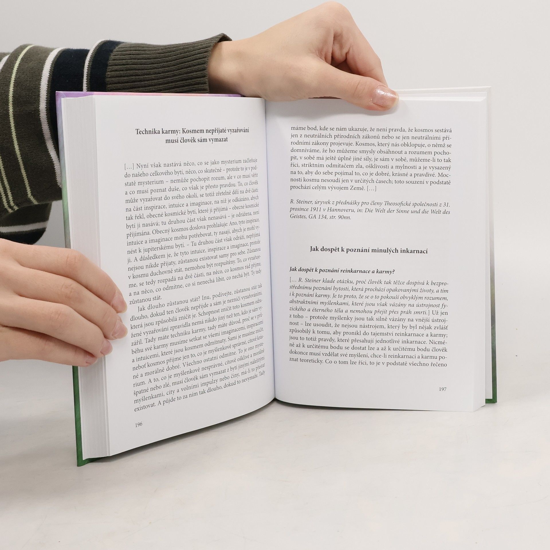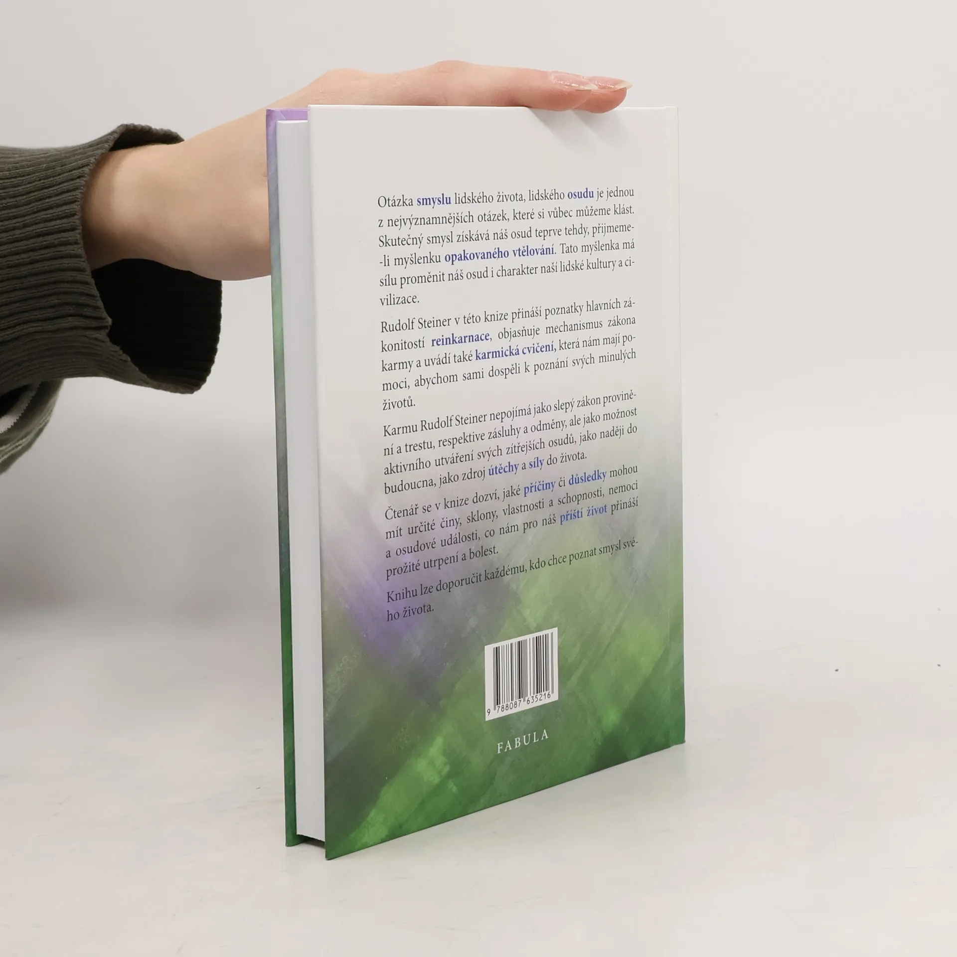 Rudolf Steiner v této knize přináší poznatky hlavních zákonitostí reinkarnace a objasňuje mechanismus zákona karmy. Uvádí také karmická cvičení, která nám mají pomoci, abychom sami dospěli k poznání svých minulých životů. Rudolf Steinet nepojímá karmu jako slepý zákon provinění a trestu, nebo zásluh a odměny, ale jako možnost aktivního utváření svých budoucích osudů, jako naději do budoucnosti a jako zdroj útěchy a síly do života. Čtenáři se v knize dozví, jaké příčiny a důsledky mohou mít nejen určité činy, sklony, vlastnosti a schopnosti, ale také nemoci a osudové události pro náš příští život a jak můžeme určité důsledky ovlivňovat. Knihu lze doporuči každému čtenáři, který chce poznávat smysl svého života (tajemství opakovaného vtělování a lidského osudu)