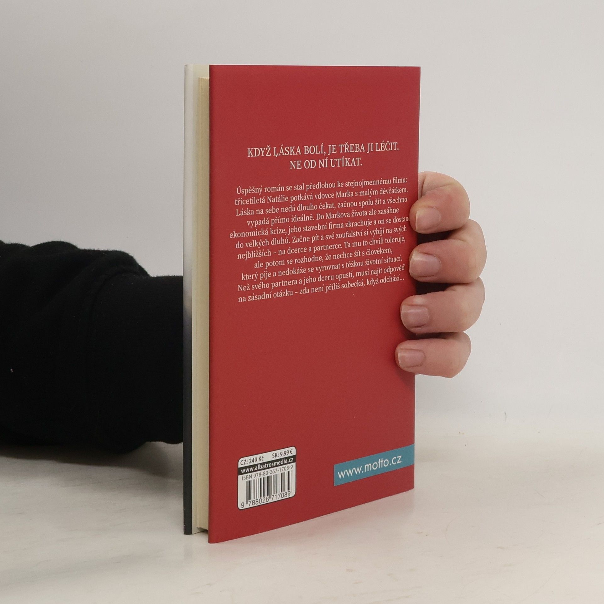 Když láska bolí, je třeba ji léčit. Ne od ní utíkat. Hrdinkou románu je svobodná třicátnice, vyrovnaná a spokojená, s dobrou kariérou a okruhem přátel a známých, které má ráda. Potkává vdovce Marka s malým děvčátkem. Láska na sebe nedá dlouho čekat, začnou spolu žít a všechno vypadá přímo ideálně. Do Markova života ale zasáhne ekonomická krize, jeho stavební firma zkrachuje a on se dostane do velkých dluhů. Začne pít a své zoufalství si vybíjí na svých nejbližších – na dcerce a partnerce. Ta mu to chvíli toleruje, ale potom se rozhodne, že nechce žít s člověkem, který pije a nedokáže se vyrovnat s těžkou životní situací. Než svého partnera a jeho dceru opustí musí najít odpověď na zásadní otázku – zda není příliš sobecká, když odchází…