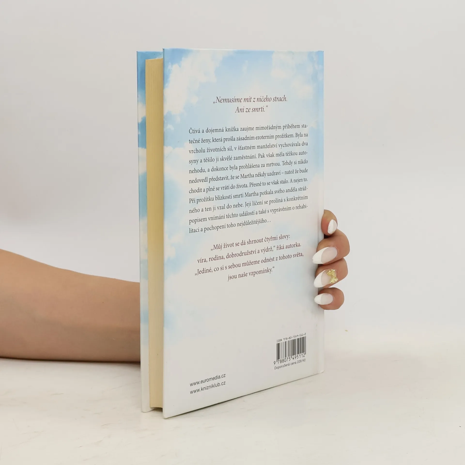 Moje cesta na věčnost a zpět. Čtivá a dojemná knížka zaujme mimořádným příběhem statečné ženy, která prošla zásadním ezoterním prožitkem. Autorka měla těžkou autonehodu, a dokonce byla prohlášena za mrtvou. Její „prožitky blízkosti smrti“ se prolínají s konkrétním popisem vnímání těchto událostí a také s vyprávěním o rehabilitaci, o návratu do plnohodnotného života, o pochopení toho nejdůležitějšího…