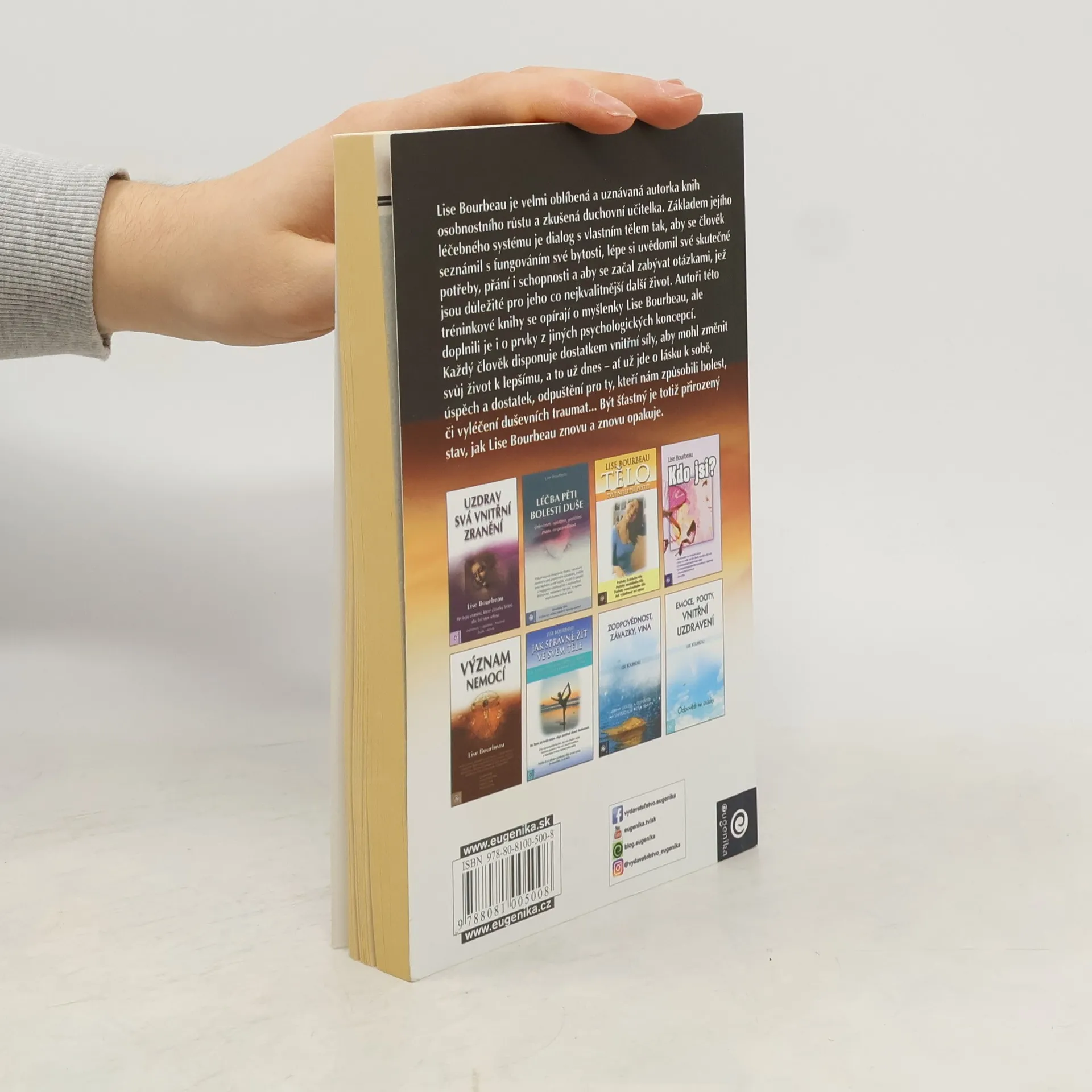 "Lise Bourbeau je velmi oblíbená a uznávaná autorka knih osobnostního růstu a zkušená duchovní učitelka. Základem jejího léčebného systému je dialog s vlastním tělem tak, aby se člověk seznámil s fungováním své bytosti, lépe si uvědomil své skutečné potřeby, přání i schopnosti a aby se začal zabývat otázkami, jež jsou důležité pro jeho co nejkvalitnější další život. Autoři této tréninkové knihy se opírají o myšlenky Lise Bourbeau, ale doplnili je i o prvky z jiných psychologických koncepcí. Každý člověk disponuje dostatkem vnitřní síly, aby mohl změnit svůj život k lepšímu, a to už dnes – ať už jde o lásku k sobě, úspěch a dostatek, odpuštění pro ty, kteří nám způsobili bolest, či vyléčení duševních traumat... Být šťastný je totiž přirozený stav, jak Lise Bourbeau znovu a znovu opakuje."