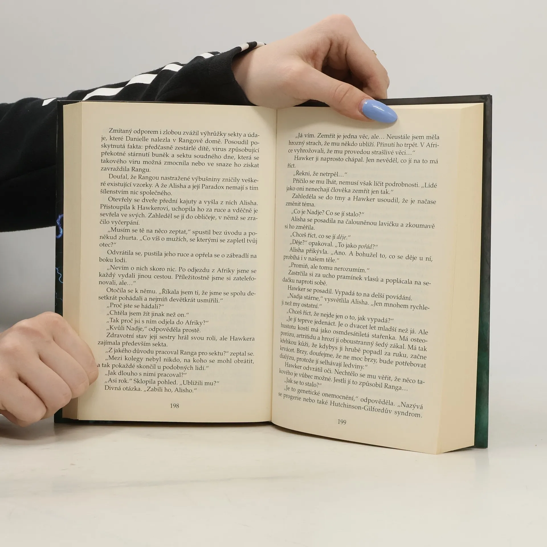 Třetí akční, dobrodružný thriller z pera autora napínavých příběhů Černý déšť a Černé slunce. Moudrost víry. Moc vědy. Hříchy člověka... Zásilka doručená do budovy OSN v New Yorku obsahuje výhrůžnou zprávu kontaminovanou neznámým vysoce infekčním virem. Několik dní nato najde francouzská policie v opuštěném domě na předměstí Paříže tělo umučeného věhlasného genetika – jeho otisky se našly na nebezpečné zásilce a jeho dávný přítel, bývalý agent CIA a někdejší žoldák Hawker, chce zjistit, co se stalo. Spojí síly s agentkou Národního výzkumného institutu Danielle Laidlawovou a společně se vydávají po stopách vrahů i vysoce tajného výzkumu. Pátrání a kusé informace je nasměrují z ulic Paříže na aukci v katakombách pod Bejrútem a přes iránskou poušť až k vůdci apokalyptické sekty, vybaveného zbraní, která může lidstvu zajistit věčný ráj – nebo rozpoutat peklo na zemi.