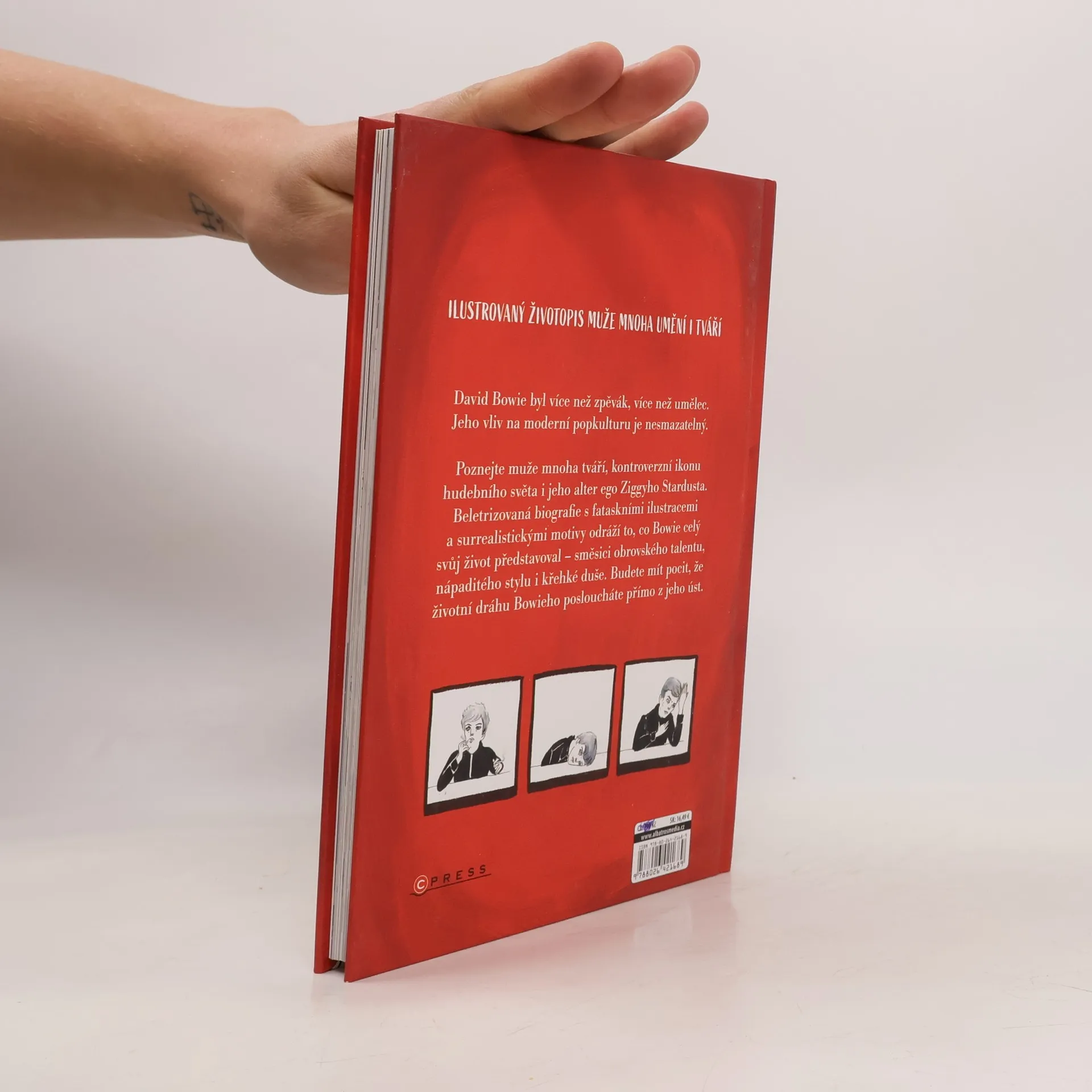 "Ilustrovaný životopis muže mnoha umění i tváří" David Bowie byl více než zpěvák, více než umělec. Jeho vliv na moderní popkulturu je nesmazatelný. Poznejte muže mnoha tváří, kontroverzní ikonu hudebního světa i jeho alter ego Ziggyho Stardusta. Beletrizovaná biografie s fantaskními ilustracemi a surrealistickými motivy odráží to, co Bowie celý svůj život představoval – směsici obrovského talentu, nápaditého stylu i křehké duše. Budete mít pocit, že životní dráhu Bowieho posloucháte přímo z jeho úst.