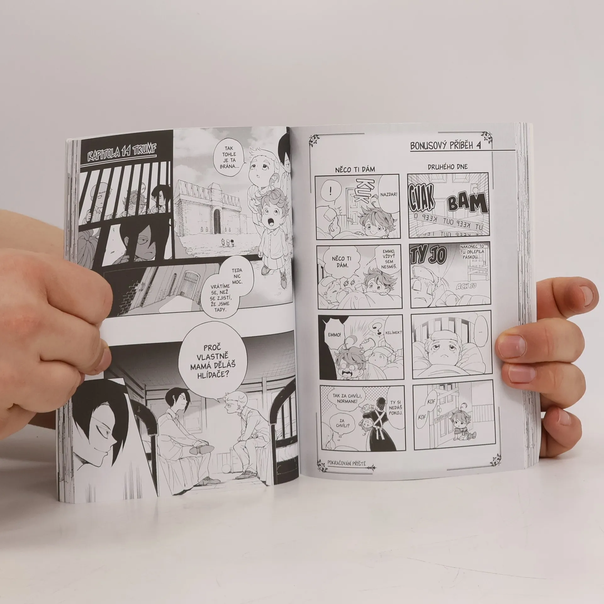 Děti v sirotčinci Grace Field House pátrají po pravdě a nacházejí stopy… jenže nejsou sami. Stahuje se kolem nich smyčka, kterou nastražila sestra Krone. A je možné, že je mezi nimi zrádce, který donáší zprávy přímo Mamá?