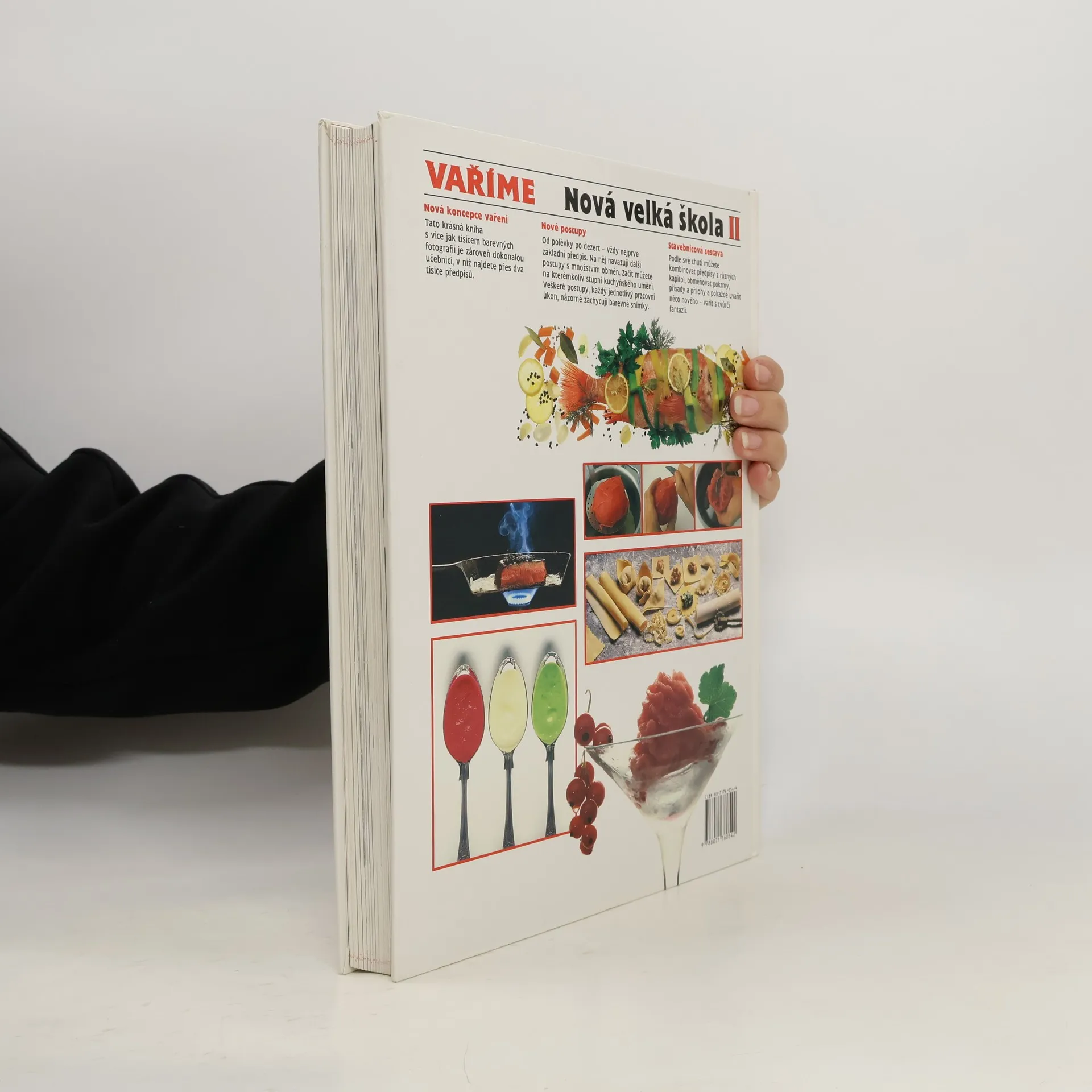 Navazuje na Nová velká škola I - Pečeme. Obsahuje 1000 barevných fotografií a 2000 zajímavých předpisů. Kniha spíš pro začátečníky. Podrobně dokumentované postupy. Rozděleno do kapitol Těstoviny, Zelenina, Maso,...