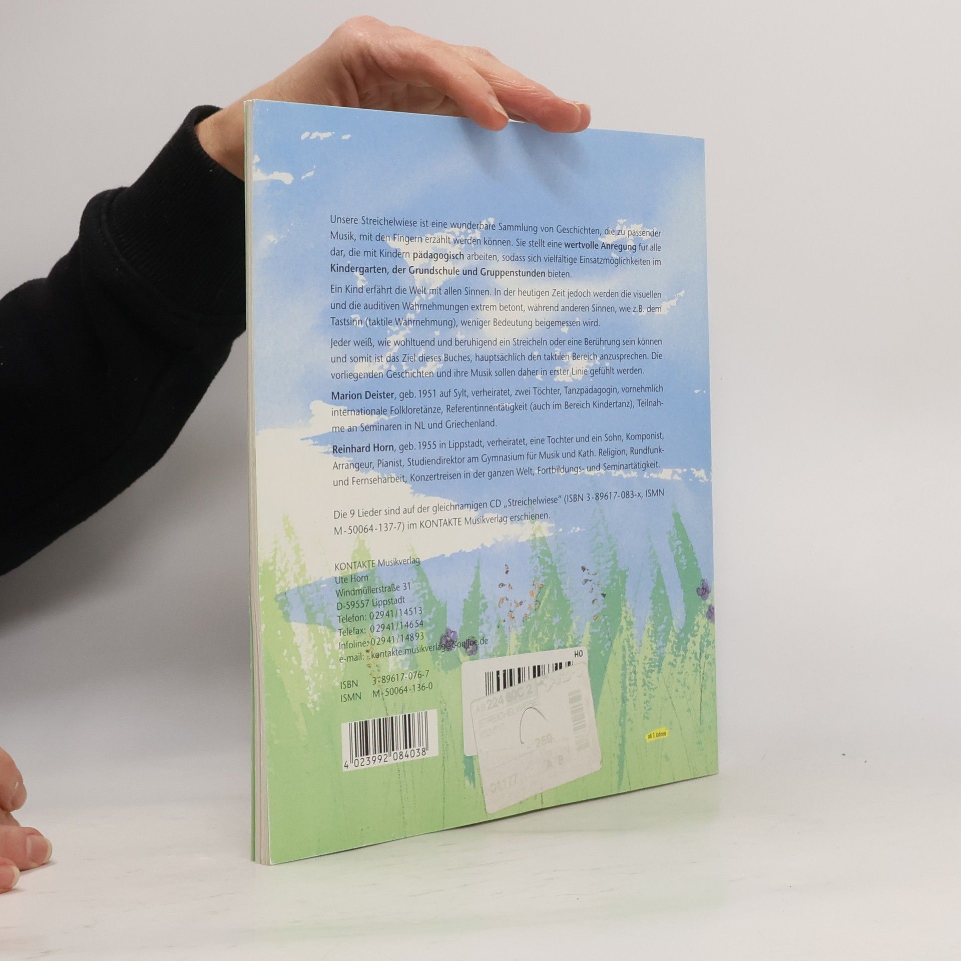 Streichelwiese Ganzheitliche Körpererfahrung für Kinder Geschichten, die man mit den Fingern erzählen kann. Text: Marion Deister Musik: Reinhard Horn Diese kleinen meditativen Phantasiegeschichten sind mit den Fingern auf dem Rücken, den Armen und Beinen zu erzählen und zu spüren - so stärken Kinder ihre ganzheitliche Sinneswahrnehmung. Gleichzeitig stellen diese Geschichten eine ideale Entspannungsübung dar. Zielgruppe: Kindergarten, Grundschule, Familie, Kinderturnclub