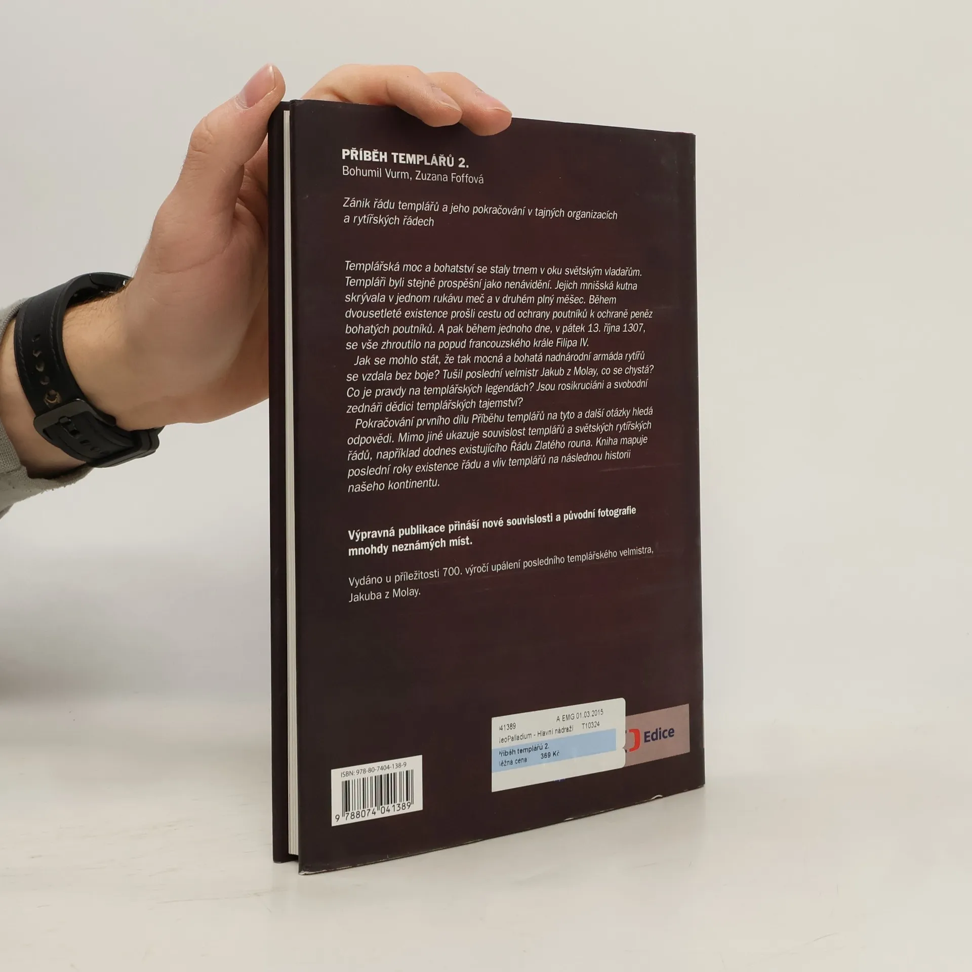 Zánik řádu templářů a jeho pokračování v tajných organizacích a rytířských řádech Templářská moc a bohatství se staly trnem v oku světským vladařům. Templáři byli stejně prospěšní jako nenávidění. Jejich mnišská kutna skrývala v jedné ruce meč a v druhé plný měšec. Během dvousetleté existence prošli cestu od ochrany poutníků k ochraně peněz bohatých poutníků. A pak během jednoho dne, v pátek 13. října 1307, se vše zhroutilo na popud francouzského krále Filipa IV. Jak se mohlo stát, že tak mocná a bohatá nadnárodní armáda rytířů se vzdala bez boje? Tušil poslední velmistr Jakub z Molay, co se chystá? Co je pravdy na templářských legendách? Jsou rosikruciáni a svobodní zednáři dědici templářských tajemství? Pokračování prvního dílu Příběhu templářů na tyto a další otázky hledá odpovědi. Mimo jiné ukazuje souvislost templářů a světských rytířských řádů, například dodnes existujícího Řádu zlatého rouna. Kniha mapuje poslední roky existence řádu a vliv templářů na následnou historii našeho kontinentu. Výpravná publikace přináší nové souvislosti a původní fotografie mnohdy neznámých míst.