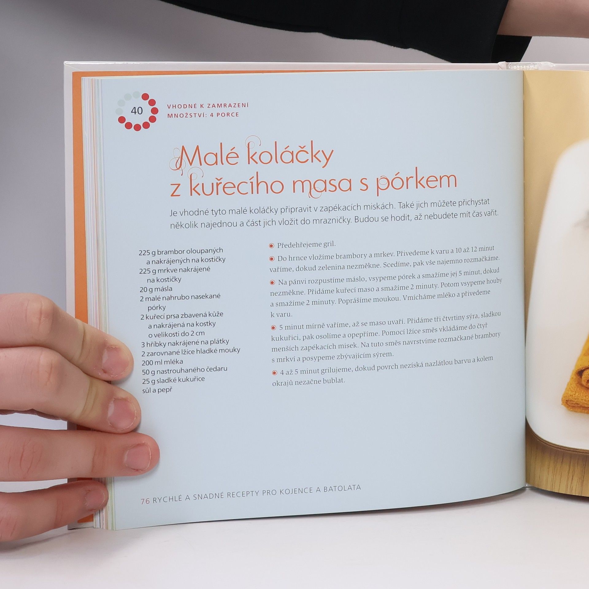 Čas prožitý s dětmi je drahocenný pro každého rodiče, takže je pochopitelné, že nechcete strávit hodiny přípravou jídla. Osvědčené rychlé recepty Další kniha od britské autorky Annabel Karmel nazvaná Top 100 jídel v minutě přináší záchranu v podobě receptů na jídla, která vyžadují minimum času a námahy, ale zároveň jsou velice chutná a nutričně vyvážená. Annabel Karmel odbourává stres rodičů z vaření pro děti, aby zůstaly zdravé a šťastné, tím, že přináší recepty na věkově odpovídající a chutná jídla pro miminka a batolata. Nenechte se při vaření okrádat o čas Snadné návody na přípravu doprovázené fotografiemi lahodně vypadajících pokrmů a časový průvodce u každého receptu činí z knihy užitečného a atraktivního průvodce pro všechny rodiče, kteří chtějí pro své děti to nejlepší a zároveň chtějí mít pod kontrolou svůj čas.