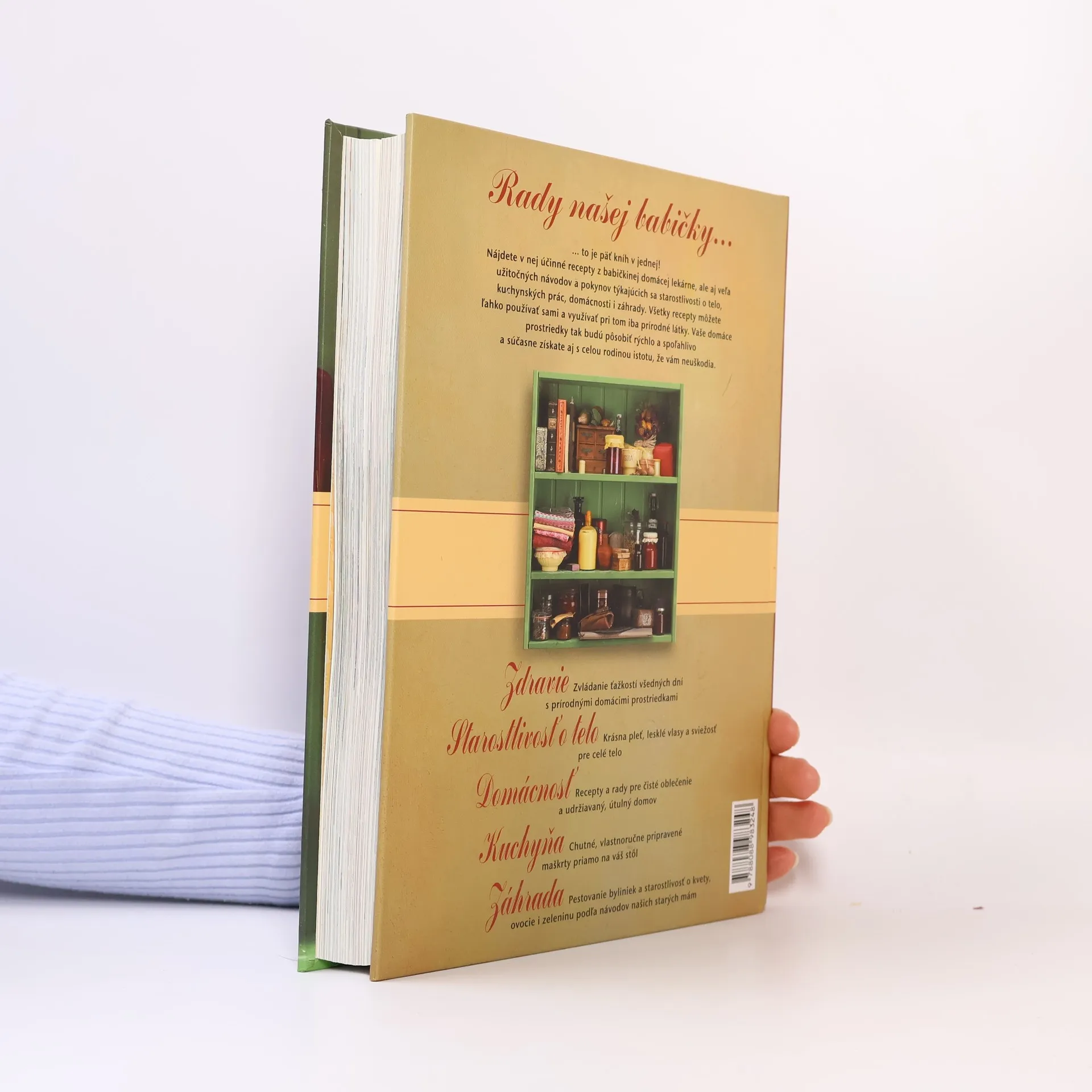 Odpoveď na tieto a mnohé ďalšie otázky ponúka praktická príručka Rady našej babičky. Bohato ilustrovaná kniha obsahuje 1200 generáciami overených nápadov, tipov, receptov a šikovných riešení – od vlastnoručne vyrobeného bylinkového octu až po rastlinné hnojivo, od olejov do kúpeľov až po škrobiace prípravky a od čistiacich prostriedkov až po ochranu proti moľom.