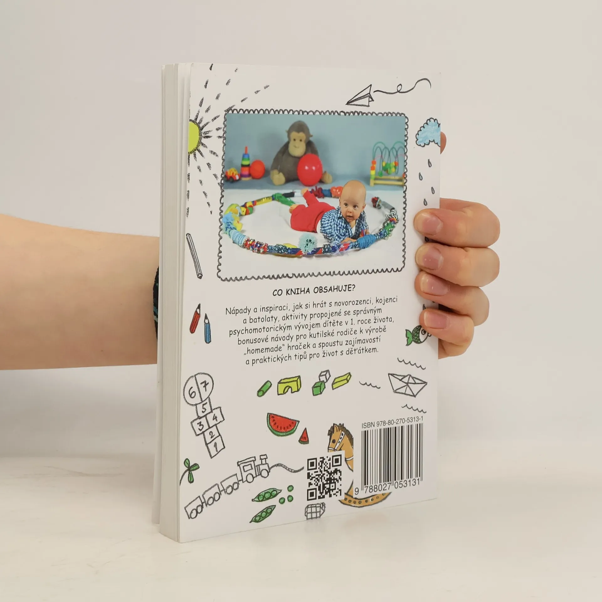 Kniha obsahuje nápady a inspiraci, jak si hrát s novorozenci, kojenci a batolaty, aktivity propojené se správným psychomotorickým vývojem dítěte v 1. roce života, bonusové návody pro kutilské rodiče k výrobě po domácku vyrobených hraček a spoustu zajímavostí a praktických tipů pro život s děťátkem. V knize naleznete 99 her, které jsou řazeny dle věku miminka.