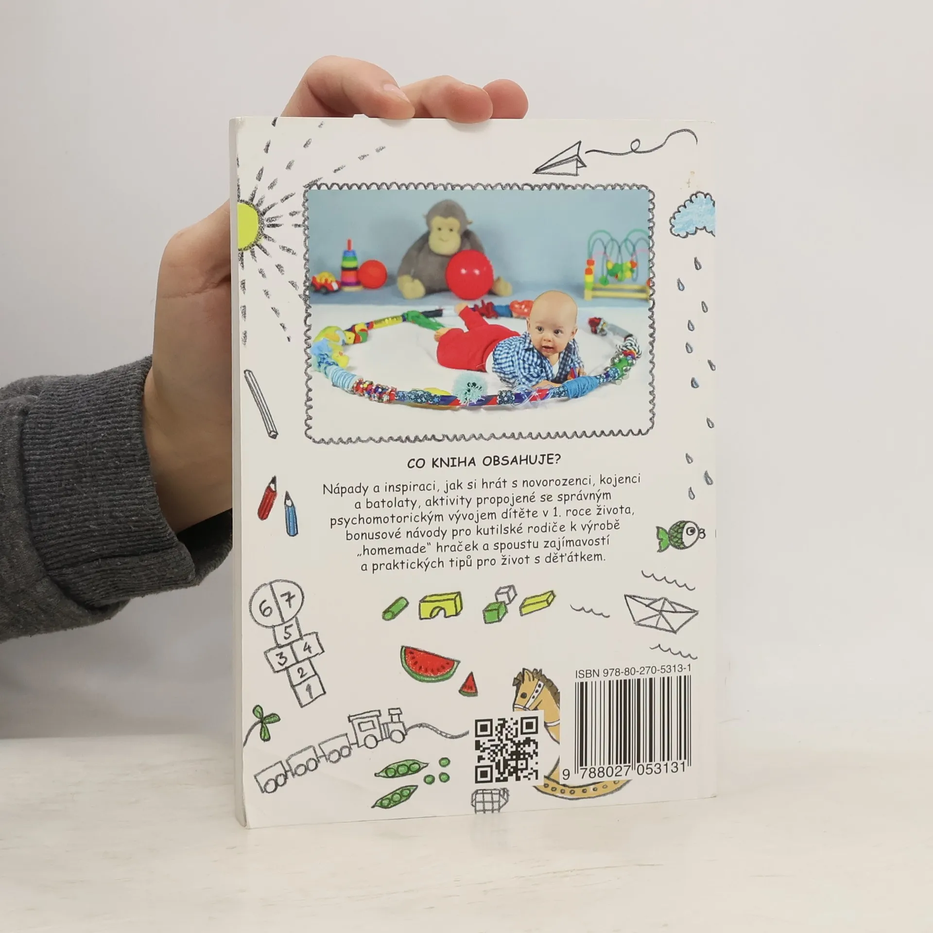 Kniha obsahuje nápady a inspiraci, jak si hrát s novorozenci, kojenci a batolaty, aktivity propojené se správným psychomotorickým vývojem dítěte v 1. roce života, bonusové návody pro kutilské rodiče k výrobě po domácku vyrobených hraček a spoustu zajímavostí a praktických tipů pro život s děťátkem. V knize naleznete 99 her, které jsou řazeny dle věku miminka.