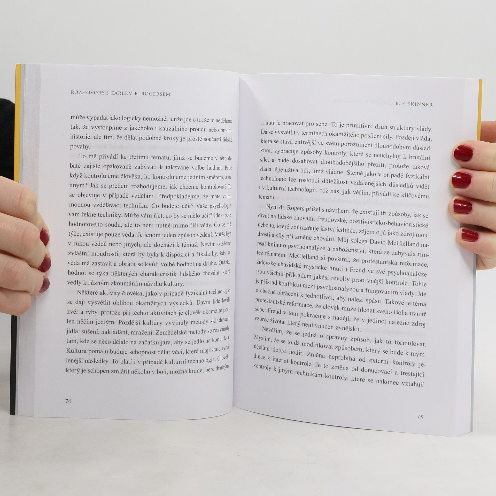 Rozhovory s Carlem R. Rogersem - M. Buber, P. Tillich, B. F. Skinner, M. Polanyi, G. Bateson. Známý psychoterapeut Carl R. Rogers absolvoval během svého života řadu rozhovorů s významnými osobnostmi nejen psychologie, ale i dalších oborů. Tyto rozhovory jsou vždy setkáním dvou hlubokých myslitelů, pro něž je dialog cestou, jak znovu promýšlet vlastní postoje a názory. Rogers v této knize rozmlouvá s chasidským filozofem M. Buberem, protestantským teologem P. Tillichem, behavioristickým psychologem B. F. Skinnerem, vědci a filozofy M. Polayim a G. Batesonem. Jsme v ní mimo jiné svědky živých polemik, hájení odlišných pozic, nesouhlasu, které dávají nahlédnout do bohatého myšlenkového a duchovního světa všech zúčastněných. Kniha je nesmírně inspirující četbou pro všechny, které zajímá nejen osobnost Carla R. Rogerse, ale i intelektuální atmosféra doby, v níž žil a s řadou dalších lidí působil.