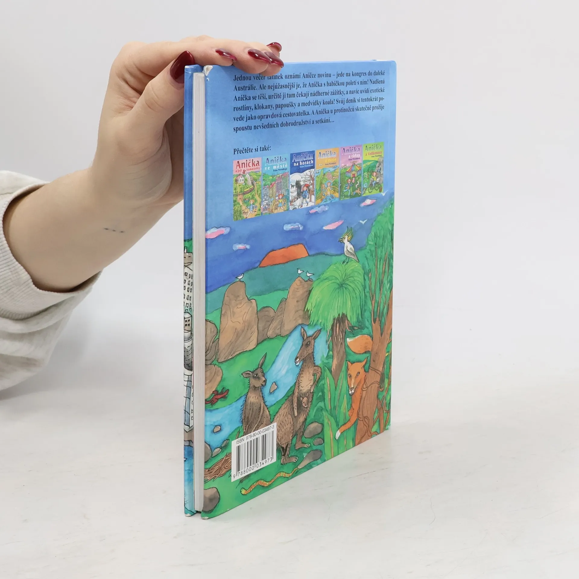 Jednou večer tatínek oznámí Aničce novinu – jede na kongres do daleké Austrálie. Ale nejúžasnější je, že Anička s babičkou poletí s ním! Nadšená Anička se těší, určitě ji tam čekají báječné zážitky, a navíc uvidí exotické rostliny, klokany, papoušky a medvídky koala! Svůj deník si tentokrát povede jako opravdová cestovatelka. A Anička u protinožců skutečně prožije spoustu nevšedních dobrodružství a setkání…