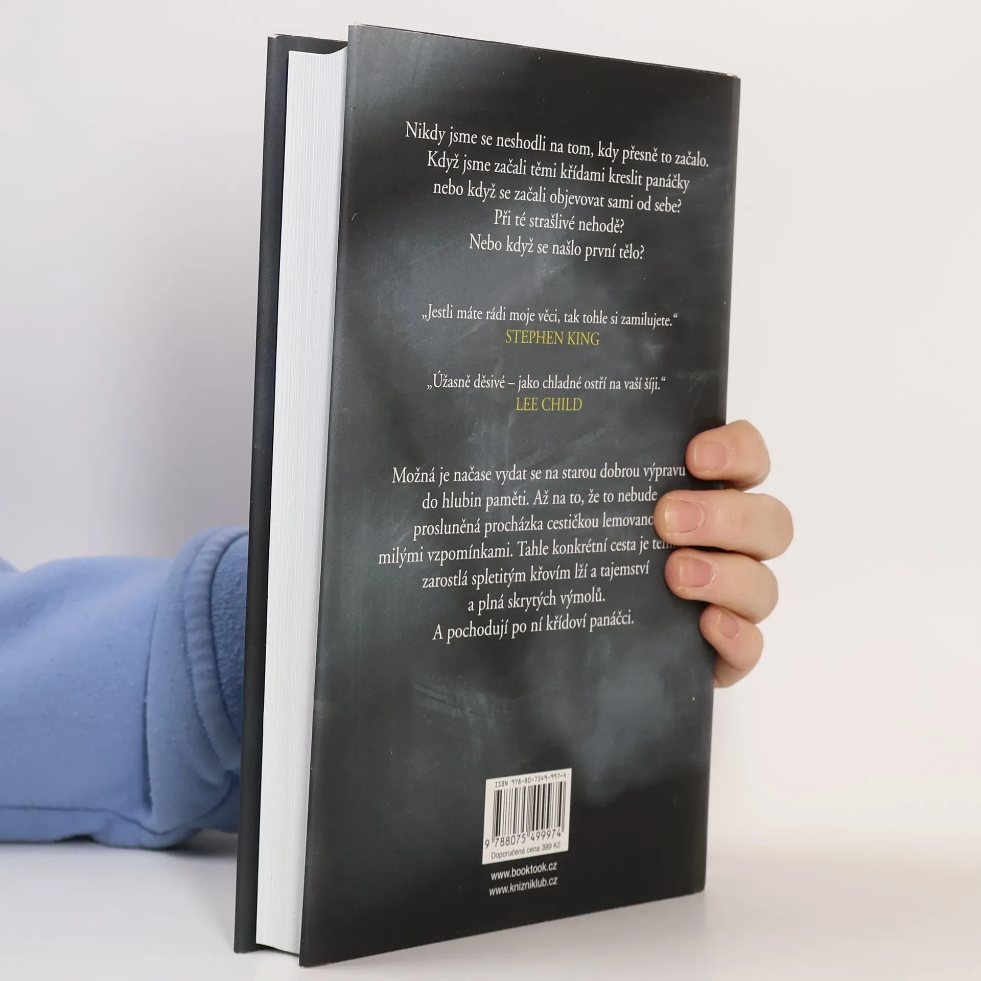 Všichni máme tajemství. Před některými utíkáme, ale ona si nás najdou. A některé hry končí vždycky stejně… Mysteriózní thriller Kříďák je tu – a nedá se před ním utéct. Cítíte to v lese, ve škole i na hřišti, cítíte to v domech a v lunaparku. Cítíte to na většině míst v malém městečku Anderbury… strach, že vás někdo nebo něco sleduje. Začalo to na pouti roku 1986, kdy se stala ta nehoda. Toho dne potkal dvanáctiletý Eddie pana Hallorana – pana Křídu. Ten přivedl Eddieho na myšlenku nevinné hry pro něj a partu jeho přátel: za pomoci křídových kreseb si mohli nechávat vzkazy. Byla to docela zábava – dokud je křídoví panáčci nedovedli k tělu. Mrtvému dívčímu tělu, rozřezanému na kousky. Tahle událost se jim nesmazatelně vryla do nočních můr. A třicet let poté najdou v dopisních schránkách záhadnou obálku – s panáčkem a kusem křídy. Strašáci z dětských let totiž možná stále dokážou zabíjet.