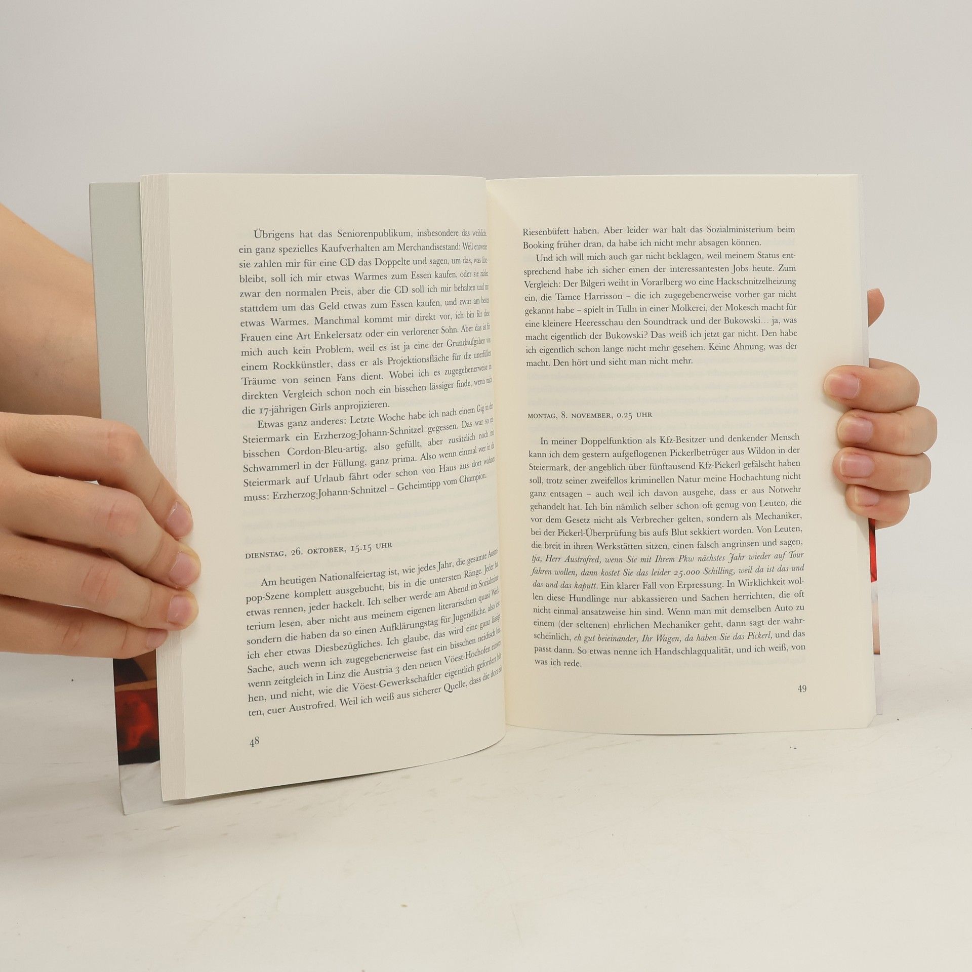 Der aufgedrehte Freddie Mercury-Impersonator, die Zukunftshoffnung des Austropop beglückt seine Fans mit seinen öffentlichen Tagebüchern. Dabei philosophiert er (unter anderem) über Rockmusik, Kirche, Eurofighter, Hausbau, Psychologie, Ernährung, Landwirtschaft, Klimawandel, Fußball, Ehe, Scheidung, Sexualität, Drogen, Humor, Körperpflege, Winterreifen, Japan, Journalismus, Fernsehen, ORF, Polizei, Asfinag, Feng Shui, Ambros, Fendrich, Waterloo, Gusenbauer, Moik, Nitsch, Schönborn, Kommissar Rex, den Dalai Lama, Kunst, Genie, Mode und das Showbusiness. „Heute habe ich mir zum Abendessen ein Paarl Berner Würstel herausgeprasselt, und wie ich ihnen da so zugeschaut habe, den Würsteln in ihrem Bauchspeckmäntelchen, wie sie auf einmal im heißen Fett anfangen, dass sie brutzelnd herumspringen und ein fröhliches Tänzchen aufführen, da habe ich direkt schmunzeln müssen. Wie schwer machen wir Menschen uns oft das Leben, wo es doch so einfach wäre, wenn wir nur ein bisschen mehr so wären wie diese Berner Würstel.“