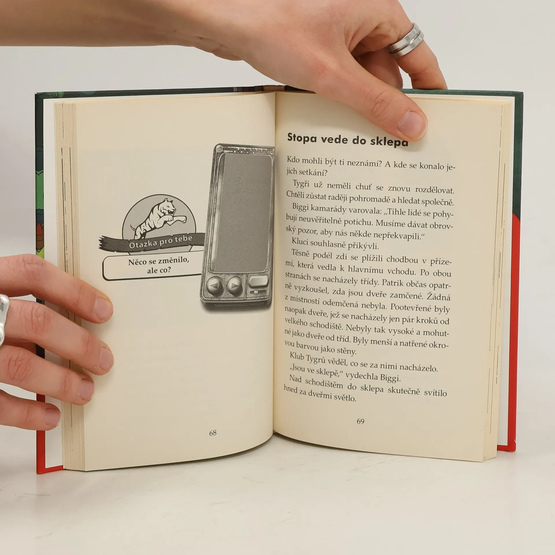Kamarádům z Klubu Tygrů se dostane do ruky záhadný vzkaz, který upozorňuje na podivné půlnoční setkání ve škole, kterou navštěvují. Jindy tak nudná budova se stává dějištěm záhadných událostí. Vypadá to, že škole hrozí zbourání a že v ní dokonce straší! Dostanou se Patrik, Biggi a Luk na stopu drzým lupičům? A co má za lubem neznámá stará dáma, která se nečekaně objeví na scéně? Zapoj se do pátrání i ty a zažij celé dobrodružství z první ruky!