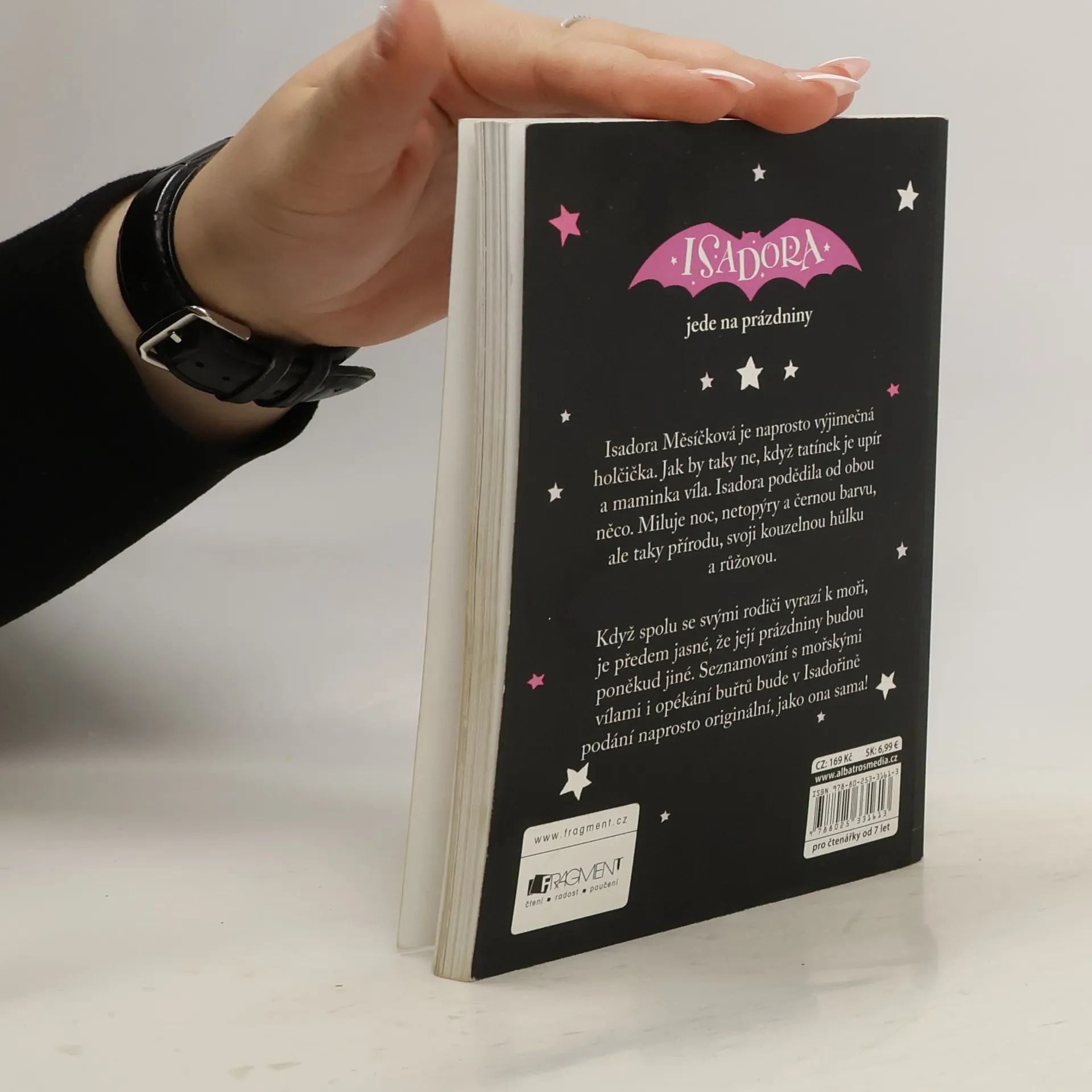 Isadora Měsíčková je naprosto výjimečná holčička. Jak by taky ne, když tatínek je upír a maminka víla. Isadora podědila od obou něco. Miluje noc, netopýry a černou barvu, ale taky přírodu, svoji kouzelnou hůlku a růžovou. Když spolu se svými rodiči vyrazí k moři, je předem jasné, že její prázdniny budou poněkud jiné. Seznamování s mořskými vílami i opékání buřtů bude v Isadořině podání naprosto originální, jako ona sama!