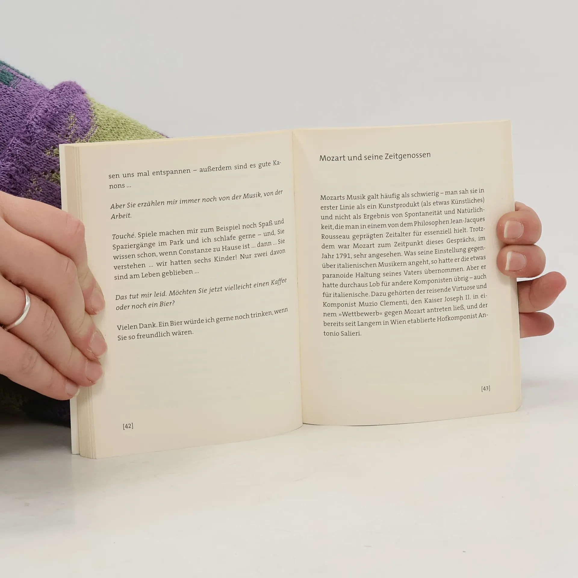 In seinem kurzen Leben schuf Wolfgang Amadeus Mozart eine unerhörte Vielfalt von Kompositionen, deren Ideenreichtum und Schönheit die Menschen bis heute faszinieren. Bei einem Kaffee spricht er über sein Leben, seine Liebeshändel und Freundschaften, Erfolge und Niederlagen – und das leidige Thema Geld.