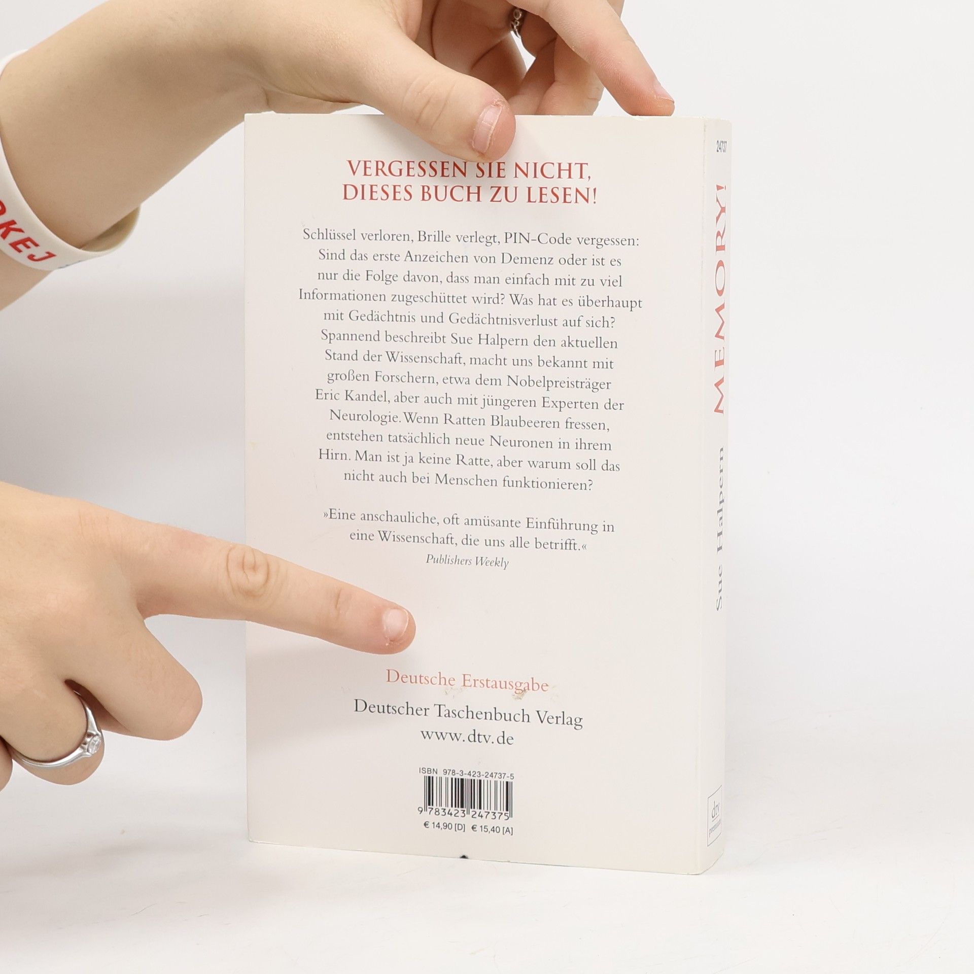 Die neurologische Daumenregel: Mach dir keine Sorgen, wenn du den Autoschlüssel verlegt hast - bedenklich wird es erst, wenn du nicht mehr weißt, wofür der eigentlich gut ist. Schlüssel verloren, Brille verlegt, PIN-Code vergessen: Sind das erste Anzeichen von Demenz oder ist es nur die Folge davon, dass man einfach mit zu viel Informationen zugeschüttet wird? Was hat es überhaupt mit Gedächtnis und Gedächtnisverlust auf sich? In den Instituten und Laboren wird intensiv darüber geforscht. Spannend und amüsant beschreibt Sue Halpern den aktuellen Stand, macht uns bekannt mit großen Forschern, etwa dem Nobelpreisträger Eric Kandel, aber auch mit jüngeren Koryphäen des Faches. Wenn Ratten Blaubeeren fressen, entstehen tatsächlich neue Neuronen in ihrem Hirn. Man ist ja keine Ratte, aber warum soll das nicht auch bei Menschen funktionieren? Bei ihren Recherchen hat die Autorin keine Mühen gescheut und sich selbst - nicht ohne Magengrimmen - diversen Hirn-Scans und anderen Tests unterzogen. 'Eine anschauliche, oft amüsante Einführung in eine Wissenschaft, die uns alle betrifft.' Publishers Weekly