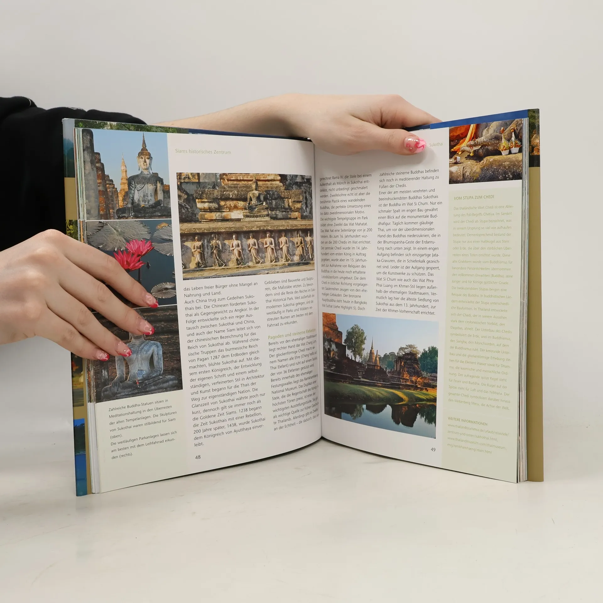 Auf Entdeckungstour in Chiang Mai, der Rose des Nordens. Das Erlebnis des Bergregenwaldes im Khao-Sok-Nationalpark. Geschichte erforschen auf den Spuren des Jadebuddhas im Wat Phra Keo. Buntes Alltagsleben, lächelnde Menschen und ehrwürdige Heiligtümer, tausendjährige Tempel und Statuen … Welche exotisch-mystische Welt Sie in Thailand erwartet, entdecken Sie in diesem opulenten Reisebildband: in 50 Highlights, die man unbedingt gesehen haben sollte. Mit Quartieren, Sehenswürdigkeiten, Veranstaltungstipps, Internetadressen