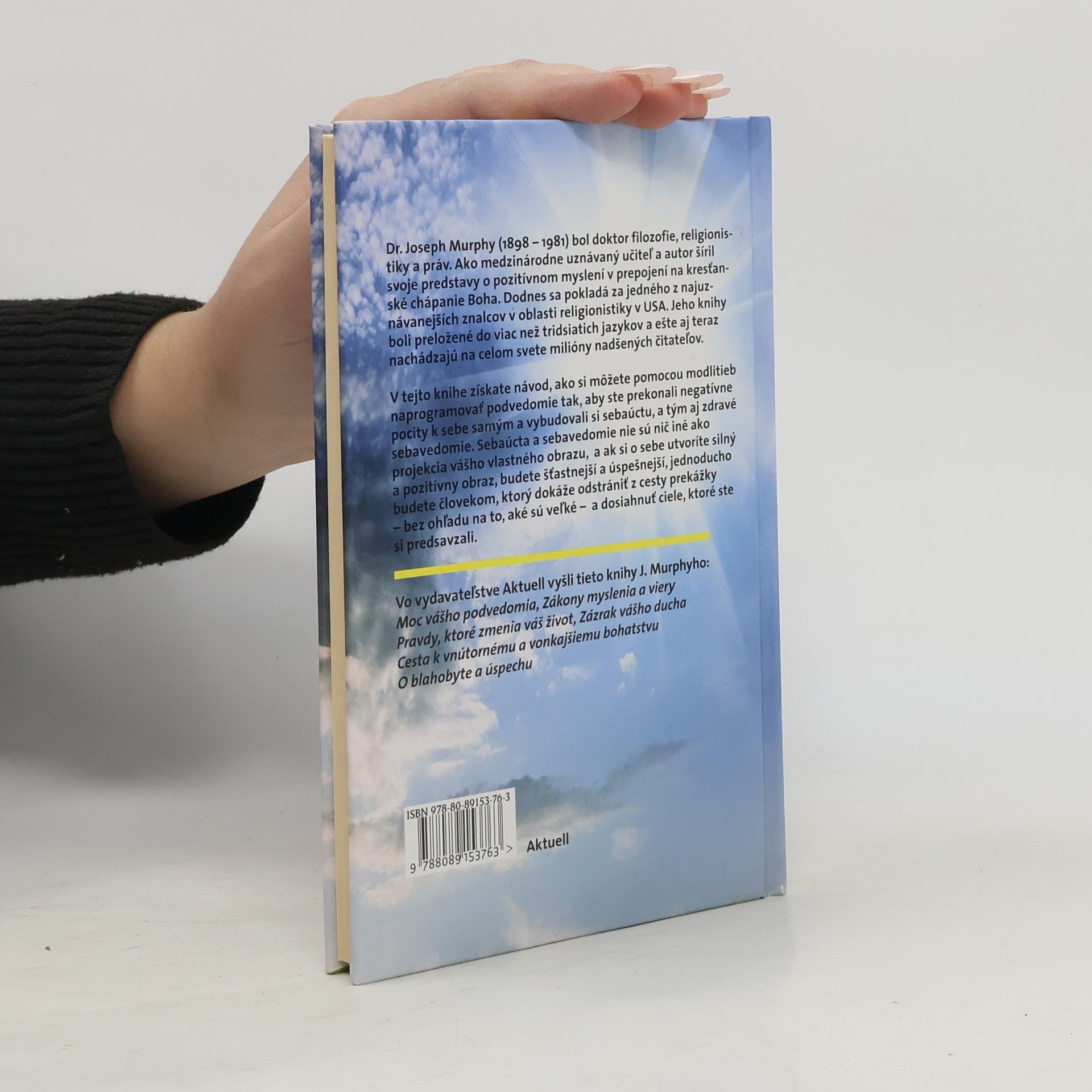 V tejto knihe vám dr. Joseph Murphy poskytne návod, ako si môžete pomocou modlitieb naprogramovať podvedomie tak, aby ste prekonali negatívne pocity k sebe samým a vybudovali si sebaúctu, a tým aj zdravé sebavedomie. Sebaúcta a sebavedomie nie sú nič iné ako projekcia vášho vlastného obrazu, a ak si o sebe utvoríte silný a pozitívny obraz, budete šťastnejší a úspešnejší, jednoducho budete človekom, ktorý dokáže odstrániť z cesty prekážky – bez ohľadu na to, aké sú veľké – a dosiahnuť ciele, ktoré ste si predsavzali.