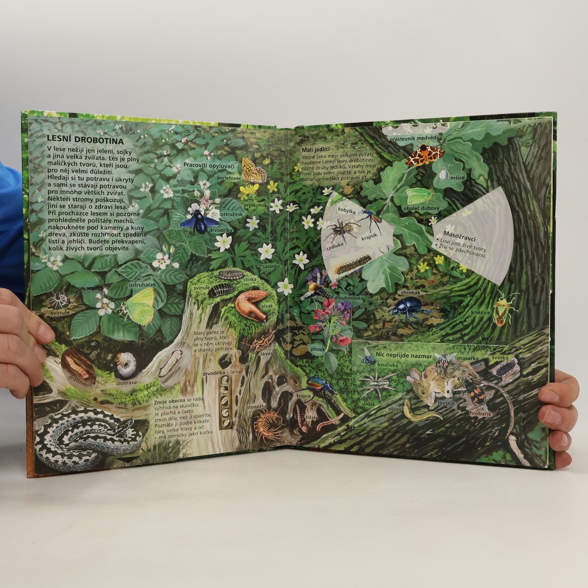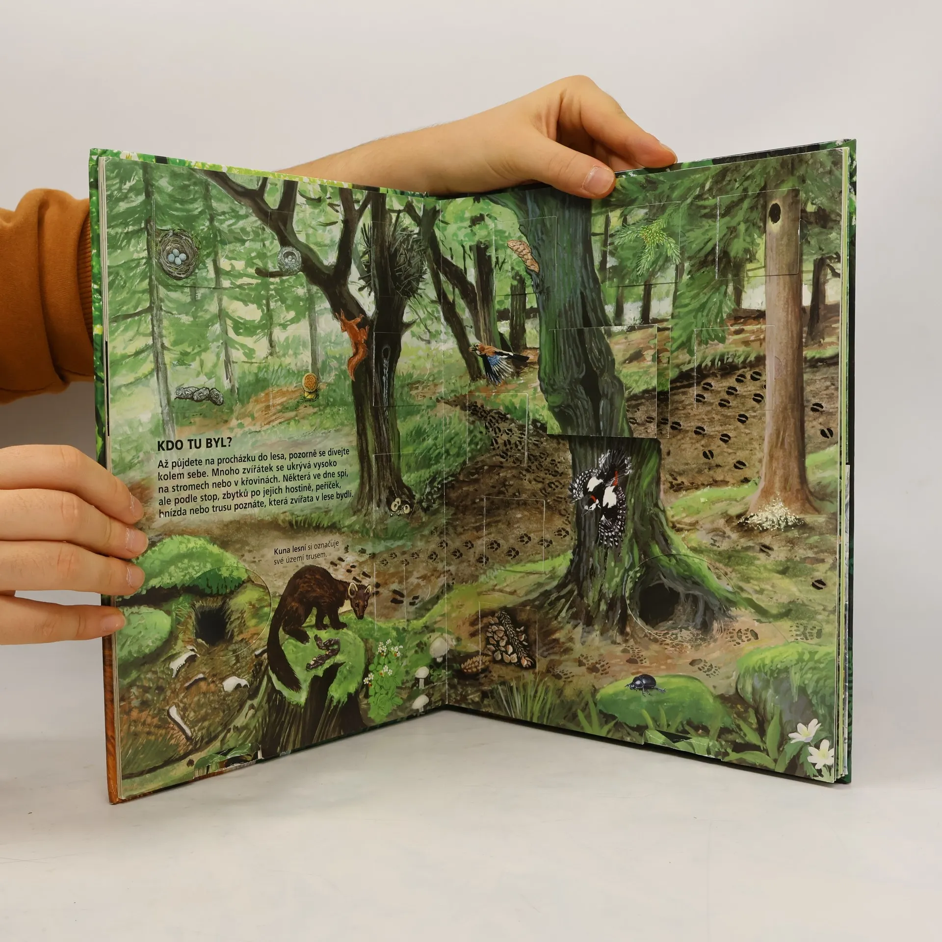Kniha V našem lese se spoustou zábavných doplňků vám bude nenahraditelným průvodcem při procházce lesem. Hravou formou se například dozvíte, co se v lese děje během roku, kdo zde žije, na čí stopy jste právě narazili.
