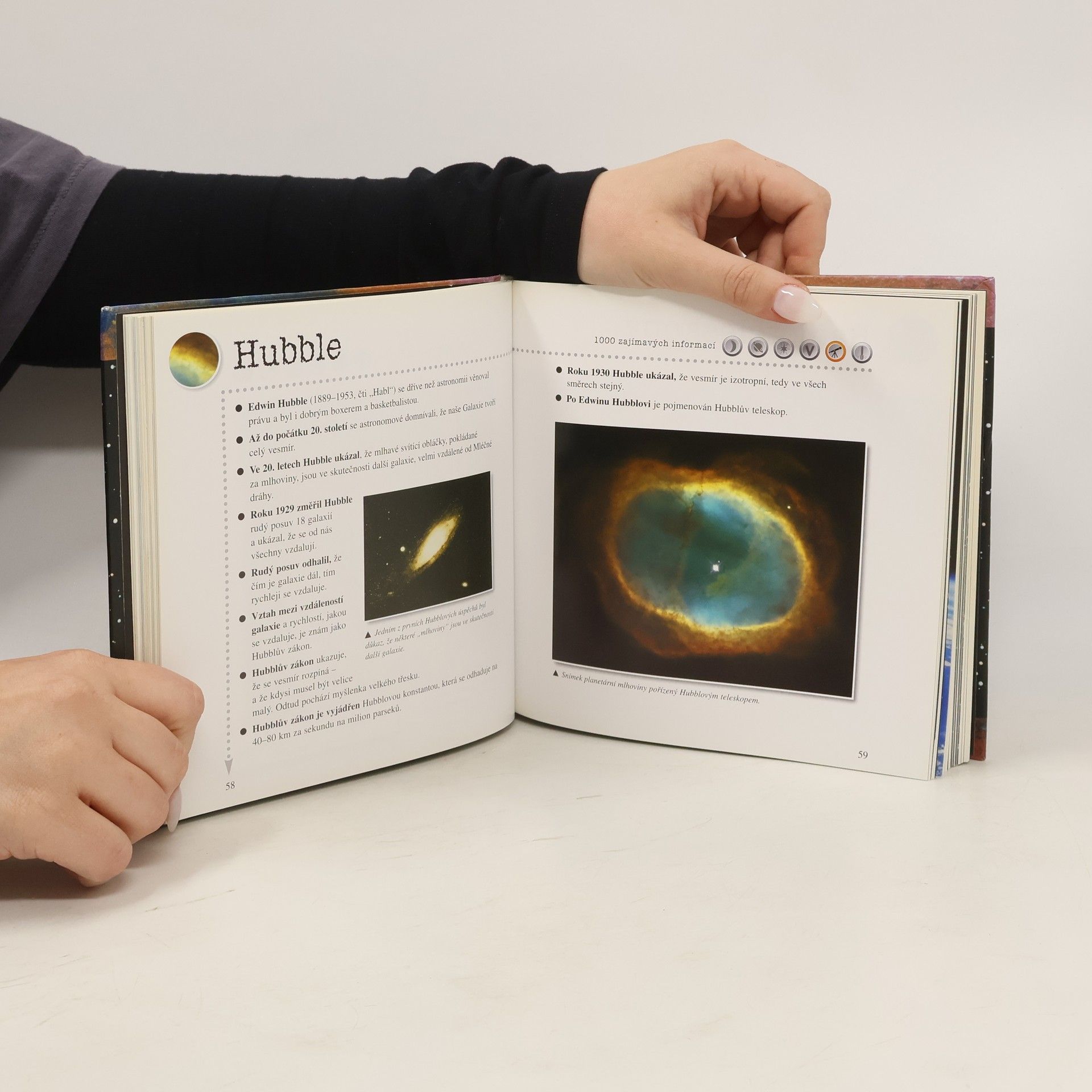 Heslovité informace o vzniku vesmíru, planetách, astronautech, černých dírách, astronomech, mimozemských civilizacích, letech do vesmíru, vědeckých objevech kosmických sondách apod. Text doprovází mnoho barevných ilustrací a fotografií.