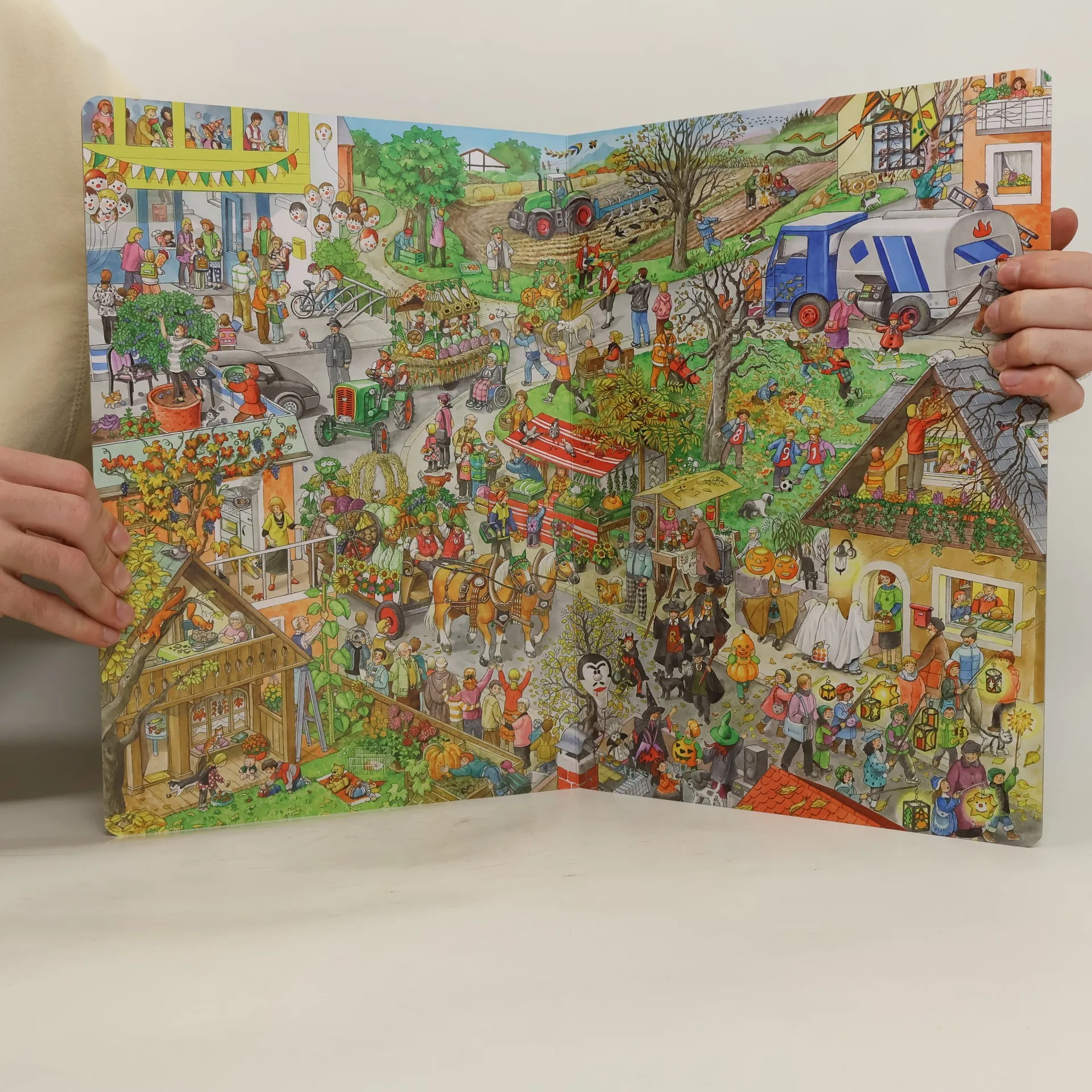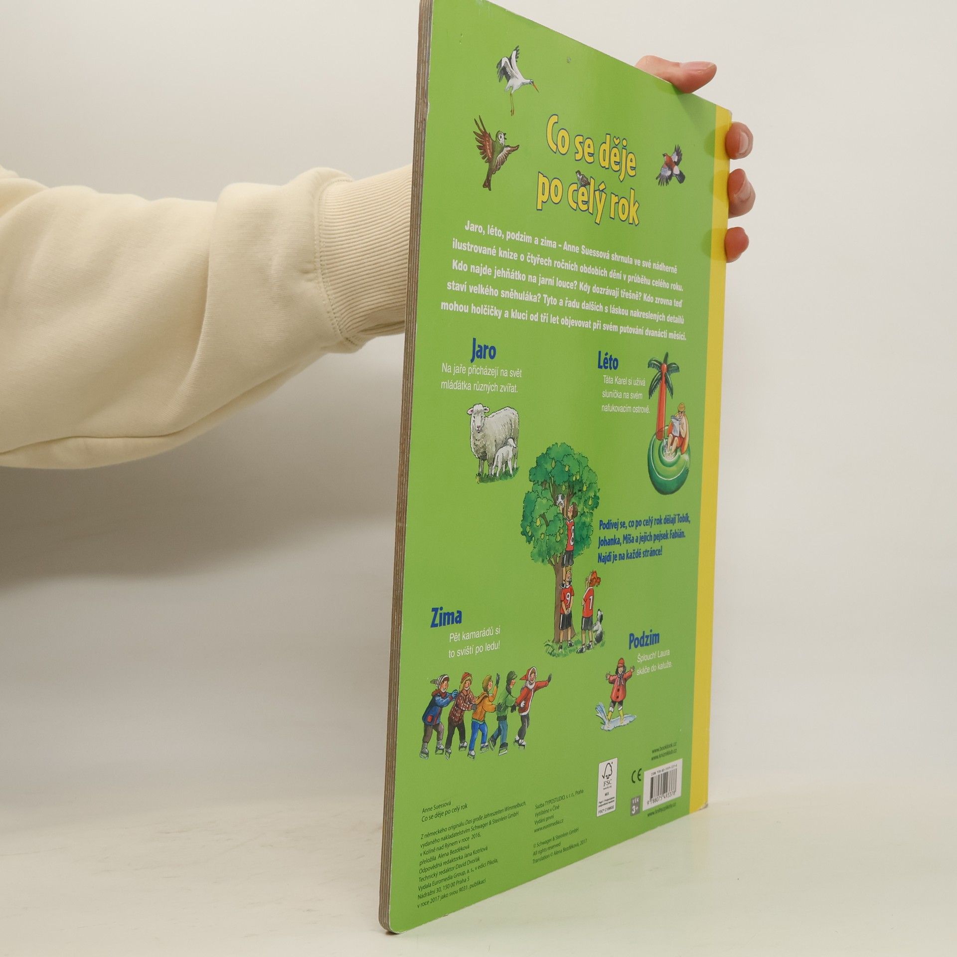 Jaro, léto, podzim a zima – Anne Suessová shrnula ve své nádherně ilustrované knize o čtyřech ročních obdobích dění v průběhu celého roku. Kdo najde jehňátko na jarní louce? Kdy dozrávají třešně? Kdo zrovna teď staví velkého sněhuláka? Tyto a řadu dalších s láskou nakreslených detailů mohou holčičky a kluci od tří let objevovat při svém putování dvanácti měsíci