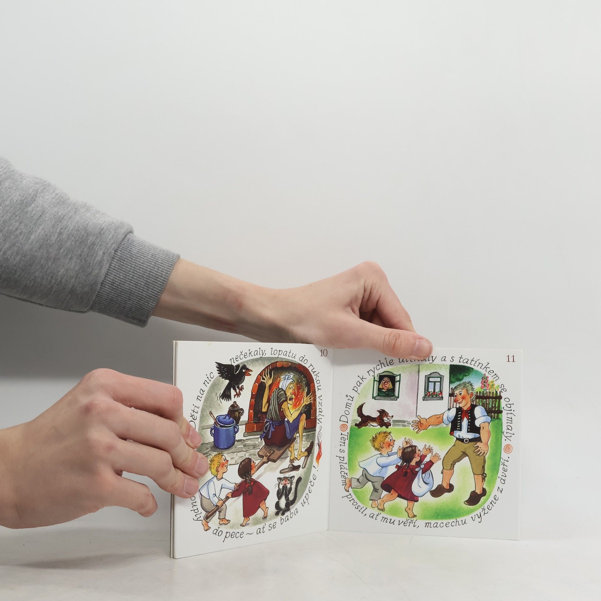 V perníkové chaloupce žije zlá ježibaba a Jeníček s Mařenkou budou mít co dělat dostat se z jejích spárů. Tuhle klasickou pohádku známe všichni. Umíte si ale představit, že jste někdy byli tak malí, že vám ji někdo vyprávěl poprvé a předtím jste ji neznali? Poeticky ilustrované leporelo jednoduše a vtipně vede rodiče a děti pohádkou a může být prvním seznámením malých s touto pohádkovou klasikou. Obrázky nechávají prostor pro povídání rodičů s dětmi a rozvíjení představivosti všech zúčastněných.