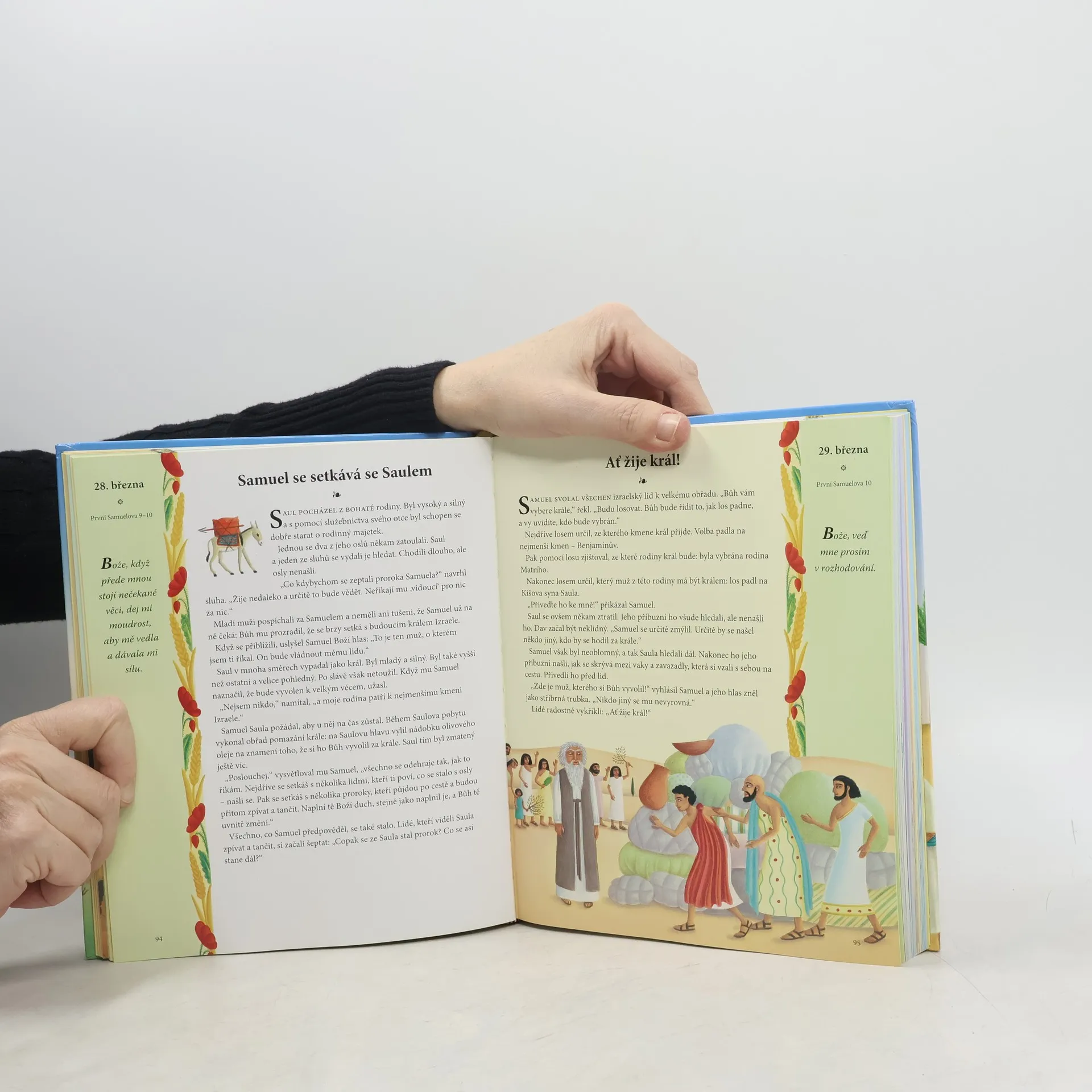 V této knize naleznete biblický příběh a krátkou modlitbu na každý den. Biblické příběhy Starého i Nového zákona jsou jednoduše převyprávěny. Pro každý den je určen jeden příběh. Na okraji každé strany naleznete datum označující den, pro nějž je příběh vybrán, číslo biblické kapitoly, z níž je příběh a jednoduchou modlitbičku inspirovanou textem. Kniha tak pomůže především těm rodičům, kteří chtějí naučit své děti pravidelně pracovat s biblickým textem.