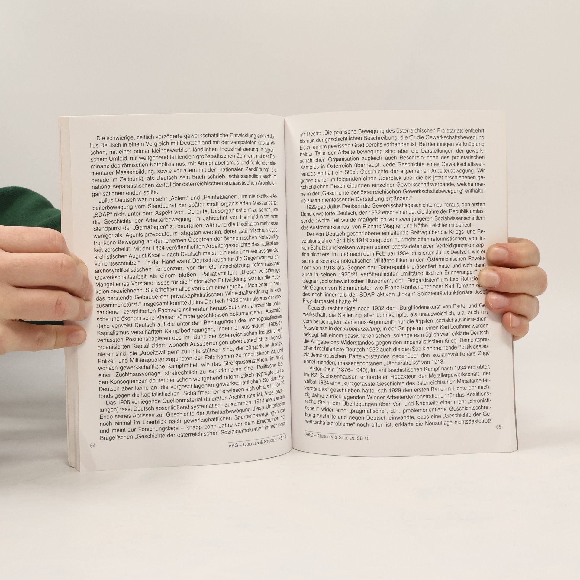 Viktor Adler hat 1908 bedauert, dass die „notwendigsten Vorarbeiten für ein eindringendes Verständnis der Geschichte der proletarischen Bewegung fehlen“: „Während der Schlacht ist es schwer, Kriegsgeschichte zu schreiben, (…).“ Die bürgerliche Geschichtswissenschaft an den österreichischen Universitäten ignorierte das Thema. Vielmehr entstanden die ersten historischen Rückblicke am Ende des 19. Jahrhunderts zur eigenen Selbstverständigung, zum „Behelf der Agitation“ aus der sozialdemokratischen und auch aus der „anderen“ radikalen Arbeiterbewegung selbst. Wichtige erste Beiträge zur Geschichte der österreichischen Arbeiterbewegung lieferten etwa Carl Grünberg, Ludwig Brügel, Julius Deutsch, Emil Strauß oder August Krcal.