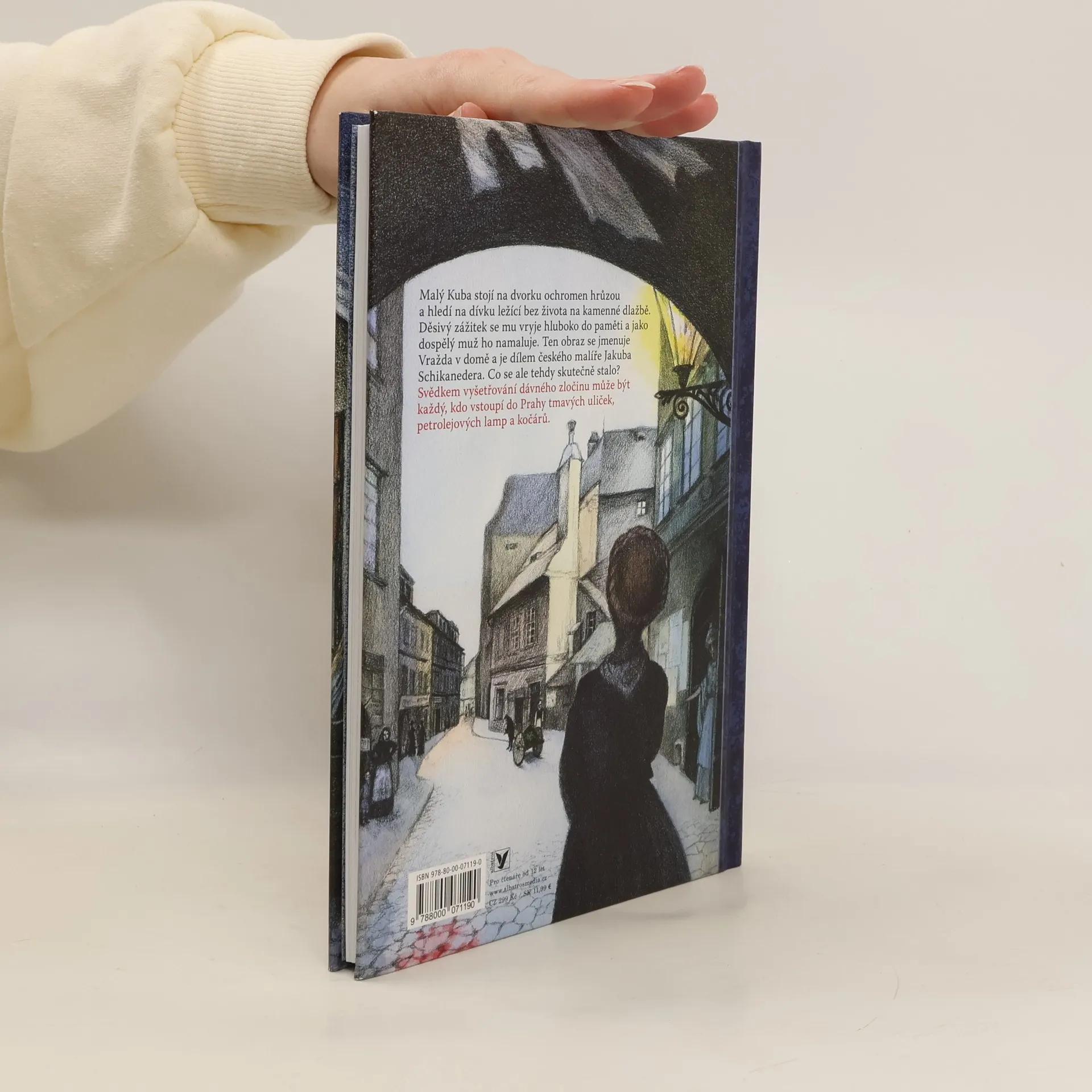 Dobrodružný detektivní román odehrávající se za života významného českého malíře Jakuba Schikanedera. Malý Kuba stojí na dvorku ochromen hrůzou a hledí na dívku ležící bez života na kamenné dlažbě. Jako dospělý muž pak děsivý zážitek namaluje. Ten obraz se jmenuje Vražda v domě a je dílem českého malíře Jakuba Schikanedera. Co se ale tehdy stalo? Svědkem vyšetřování dávného zločinu může být každý, kdo vstoupí do Prahy tmavých uliček, petrolejových lamp a kočárů.