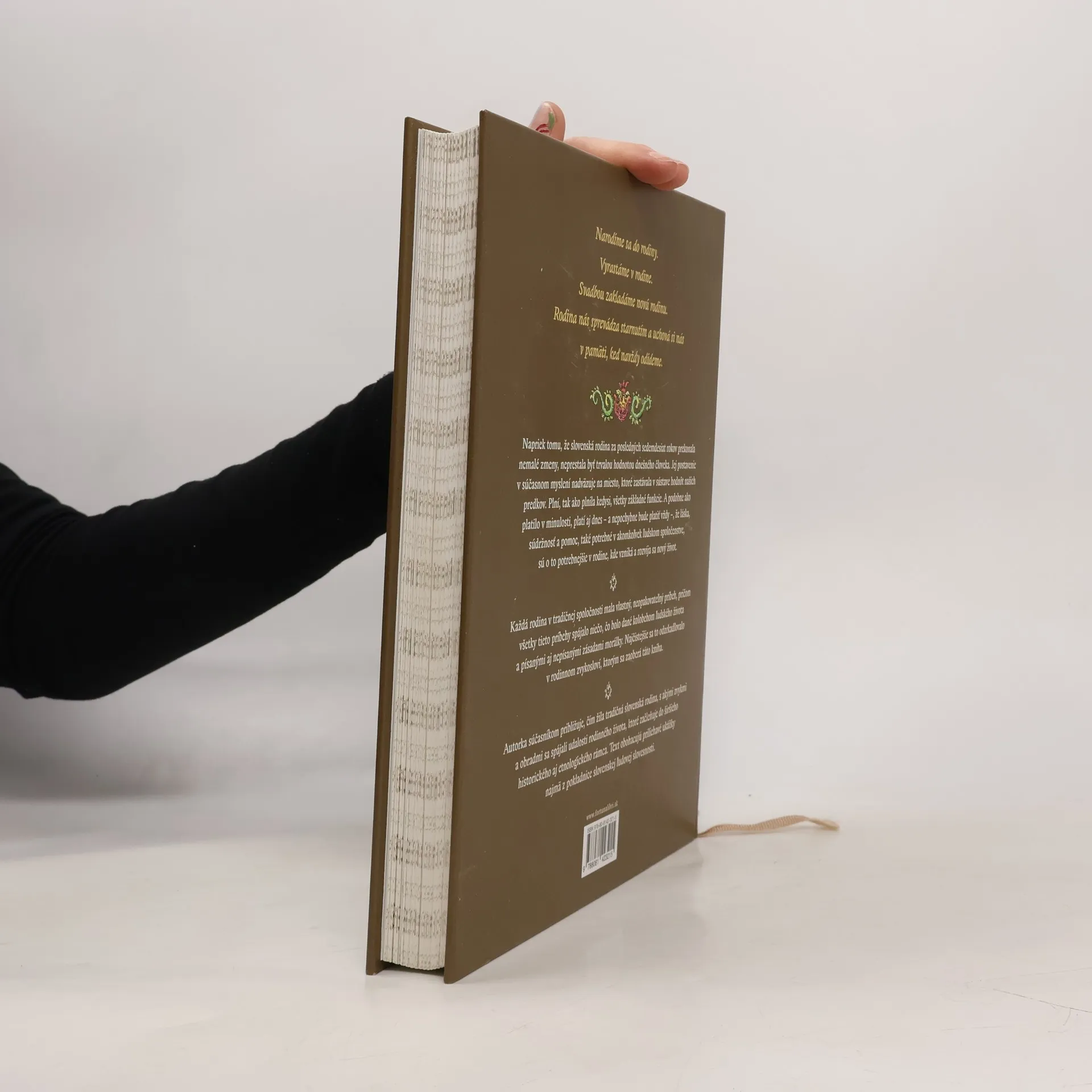 Nová kniha známej slovenskej etnologičky Kataríny Nádaskej je založená na životnom cykle človeka. Približuje rozsiahly a pestrý komplex javov, ktoré v živote tradičnej slovenskej rodiny súviseli s jednotlivými fázami tohto cyklu. Autorka sa najskôr venuje okruhu tradícií spojených s narodením nového človiečika, potom krok za krokom sleduje jeho začleňovanie do dedinského spoločenstva, podrobne rozoberá svadbu ako rozhodujúci krok založenia novej rodiny a napokon sprostredkuje prirodzenosť, s ktorou tradičné spoločenstvo akceptovalo fakt staroby a smrti. Kniha je nezvyčajne bohato doplnená ukážkami ľudovej slovesnosti a klasickej literatúry a jej ilustračný sprievod vytvoril Martin Kellenberger.
