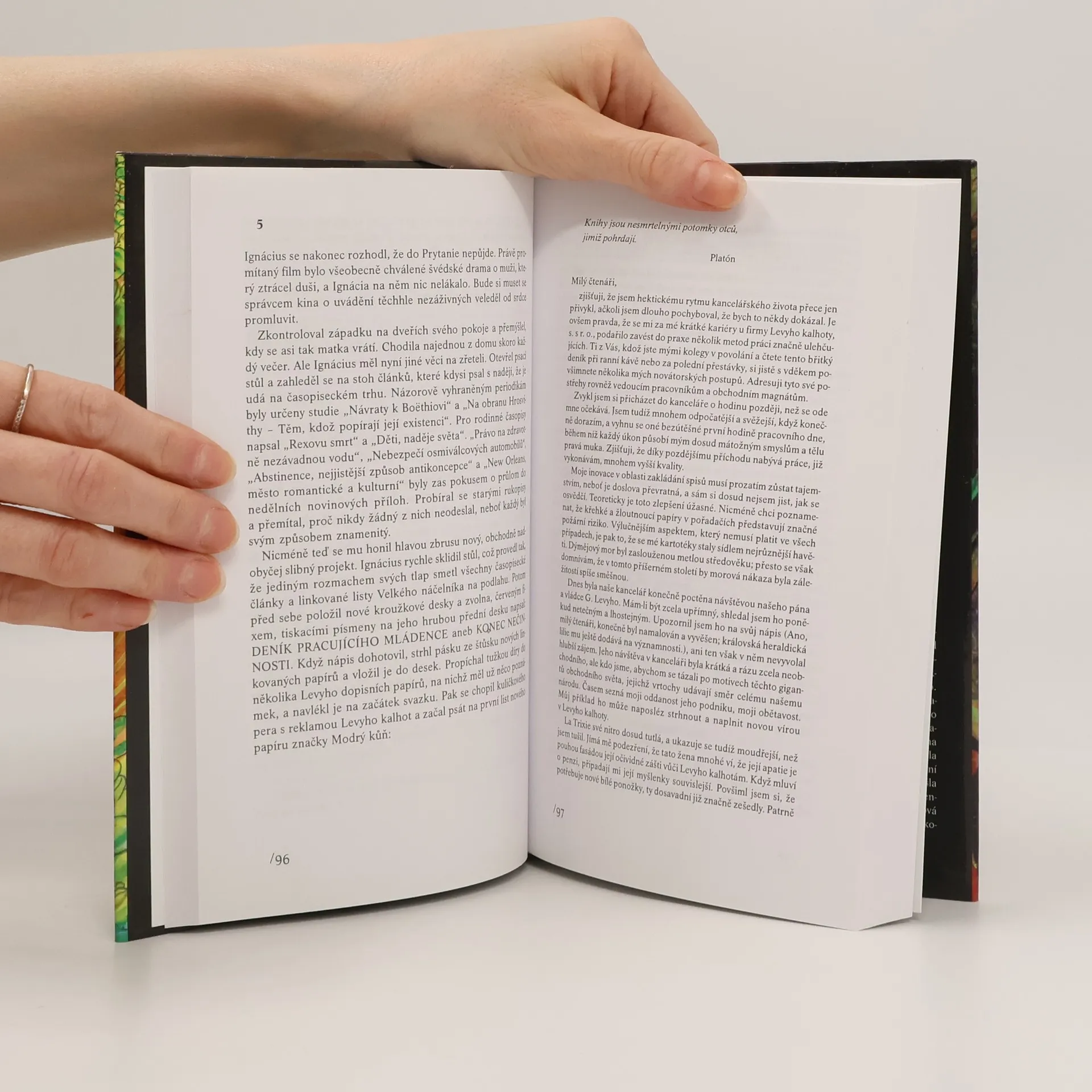 Pulitzerovou cenou oceněný, dnes již kultovní, humoristicko-satirický román z barvitého prostředí New Orleansu. Hlavním hrdinou je Ignácius Reilly, dnes už legendární postava, výstřední třicátník s akademickým vzděláním, který odmítá pracovat a žije se svou ovdovělou matkou až do dne, kdy se jeho matka rozhodne, že Ignácius si prostě musí najít práci...